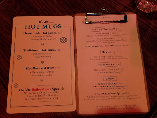 Read moreUntil my last meal here, Hi-Life would have gotten an unqualified 5 stars. A varied menu with something for everyone in a comfortable casual setting, convenient to transportation and a lot of great destinations, plus pretty fair prices. And it was always really, really good. But last week they had an off night. And yes, it happens to everyone, so I will definitely go back and I won't really hold it against them, but they did it when I had out of town guests so it was embarrassing.