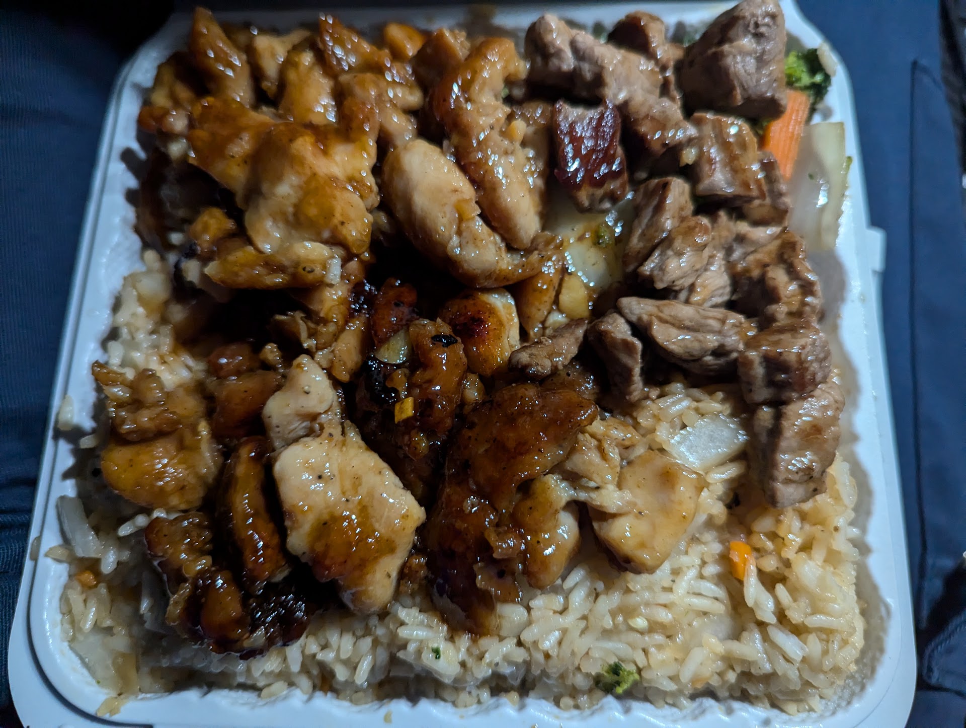 Read moreChicken and steak hibachi was fire. Good portion of meat for the money, the meat actually tasted good, the fried rice tasted good and that white sauce they provided went nicely with the food. Also got some fried pork gyoza and that was okay, nothing special. Hibachi here is definitely on point, I'm surprised it took me so long to check it out after getting recommendations from my coworkers. It goes without saying, I'll definitely be back and I'd recommend ordering your food online and going to pick it up to minimize wait times, especially since parking around there isn't...
