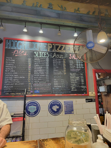 Read moreLapin and I came here before the Javits Center. The restaurant wasn’t very noticeable from across the street, so we had searched for it on our GPS. The small pizzeria is located right under the HighLine which makes it convenient. When we entered, there wasn’t anyone in there. They had a couple of seats line against the walls and the counter but it could feel packed if more than five people are in there at a time. Lapin and I got two plain slices, a Grandma slice, and a Margherita slice with two sodas to guzzle it all down. The pizza was tasty, a bit tastier than the average tasting pizzeria slices but not as great as brick oven pizza. We had to wait around 10 to 15 minutes for them to heat up the slices before we could pick it up from the counter. The guys who gave us our pizza was friendly but the cashier was annoyed that we didn’t leave a tip. Given this is a small local pizzeria and we got our order to go, picked up and ordered our slices, and paid in a separate location, I have never normally left a tip in a situation like this. Perhaps, this is the norm and I am at fault but I still didn’t think I deserved...