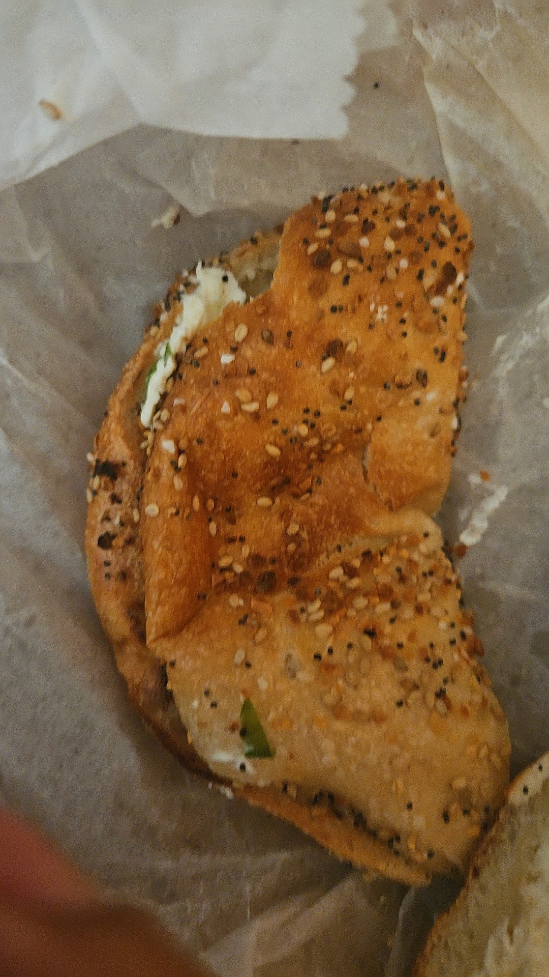 I decided to come here to support a guy. There's a chubby brown girl who always has an un-iron 😖 face every time I order, not the girl with the glasses, she and the black worker are friendly. I ordered a bagel with butter and coffee, nothing big to say it takes long to make. I understand they may put others orders in due to the traffic and i'm fine with that, but dont have me wait soo long everytime i order, go-back and start my order, last time, she did the same thing, finished my order, rest it by the register amd left, while i stood there, the black worker had to go ask her if that was my order, because he asked me if that's mines, i said "i dont know" 🤷 she just dropped it there and left....she does everyone order first and have customers waiting. Normally, if a customer waits on the line, someone would say how can i help you or acknowledge you, prompting that theyre ready to take your order, shes selective on who she does that to.....not a smile, always angry looking. But other ethnicities come in....big smiles....from ear to ear..... I love being observant. You see a lot of stuff. Good bagels, the boss is a nice guy....but i dont like buying food with negative vibes.....i...