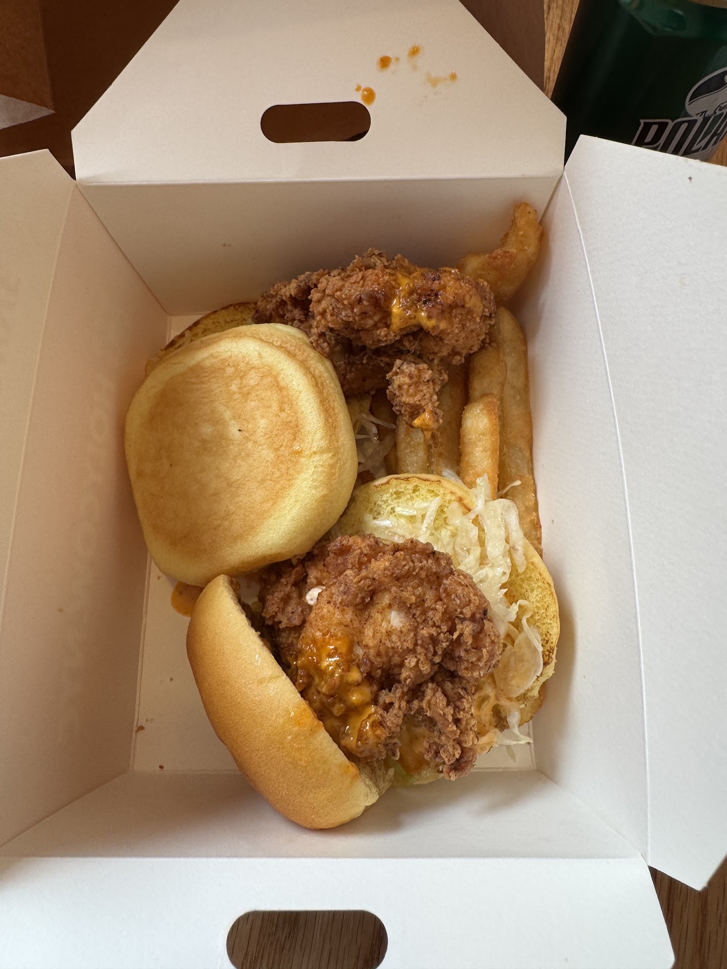 Their chicken sandwiches are solid. Something tells me they’ve done this before, as in: does this company own another fast food chain that just does chicken? I’d come back just for their chicken.