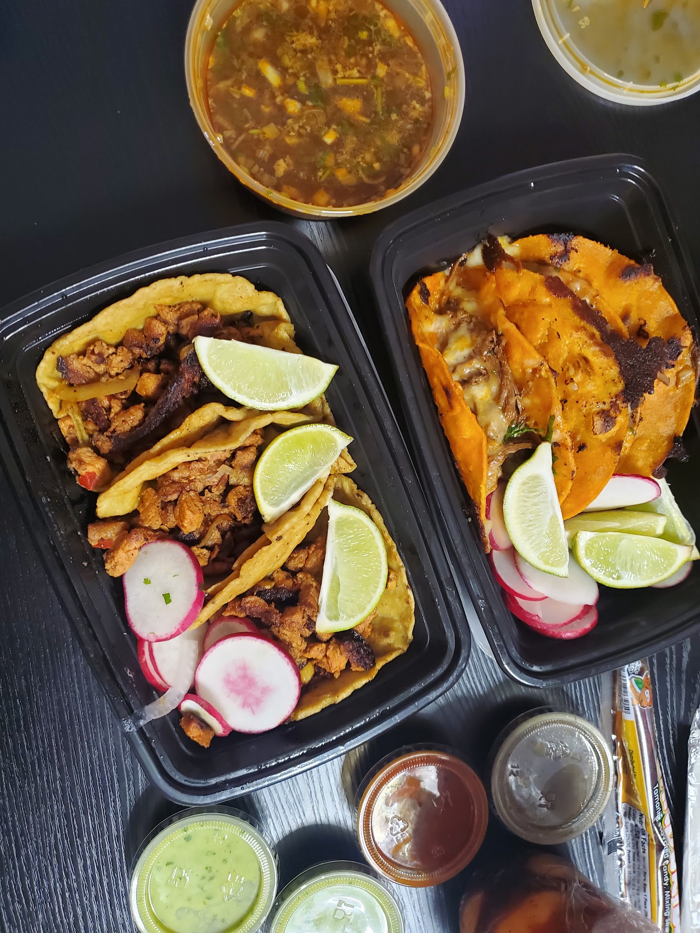 To start, the birria tacos were so dry and no sauce on them. That was bad enough but if we could dip em, then okay whatever, but they DONT come with the consomme though the menu even states it. The plate was literally a platTILLO- it was a mini plate.. literally nothing on it, the rice was about a spoonful. The shrimp and chicken tostadas were lacking toppings and hard as a rock. So flavorless, as well as the empanadas. Even most non Latinos can pull off an empanada with the right seasoning! We threw it all away after a few bites and wound up grabbing pizza, as it was too late to bother with anything else and we were just still so hungry. It sucks because it would have been great to have some good mexican food near by. But that's a pass for...