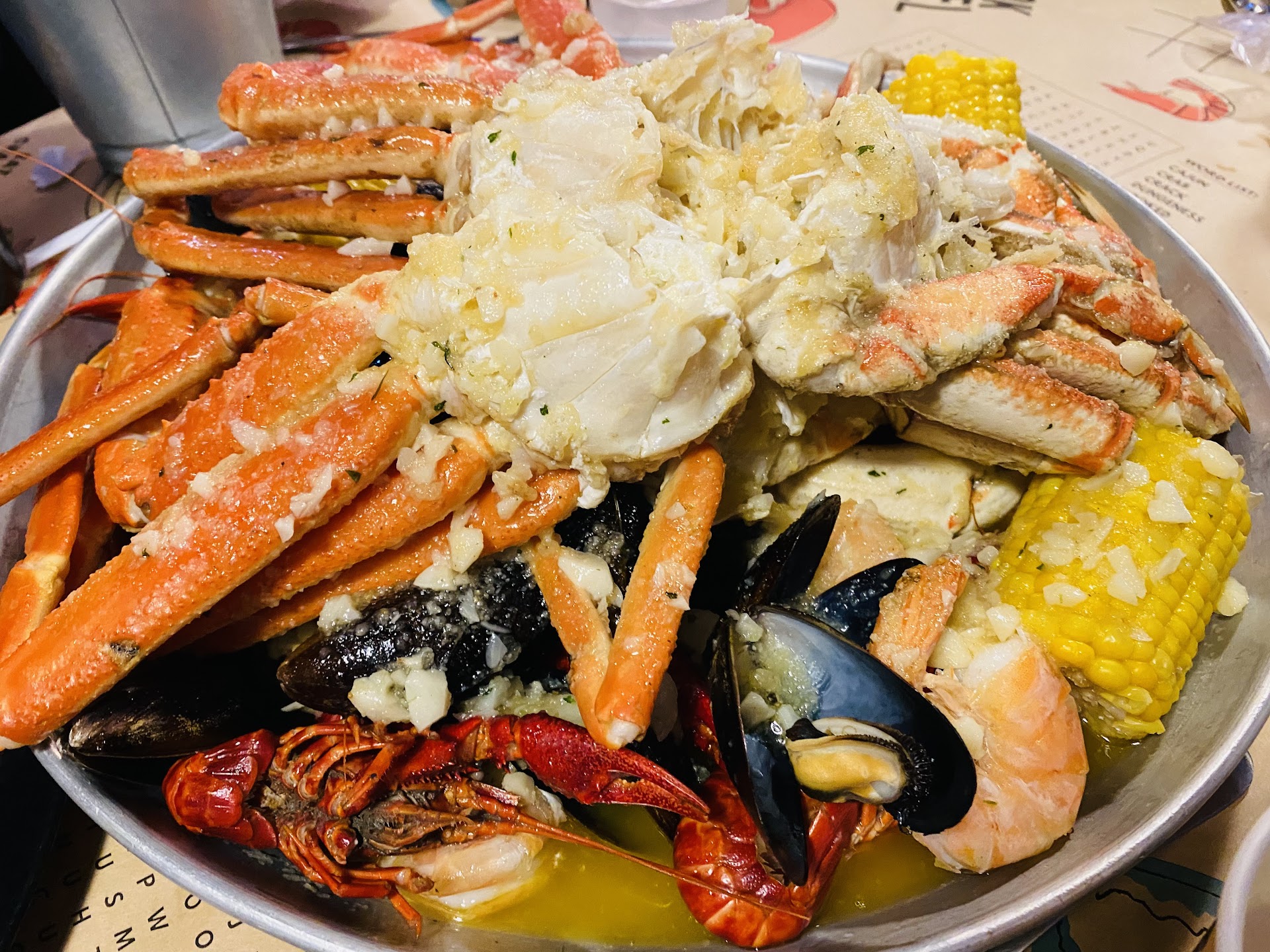 Now onto the food. The portions were huge and adjustable based on your preference (I.e., you can order half a pound of crab legs or five pounds), and each comes with whatever sauce or seasoning you prefer. The food started off a bit on the slower end, even for the appetizers and soups, but then the speed hastened perhaps due to it being a bit less busy. We didn't mind it and we enjoyed our appetizers and entrees, with the obvious winner being the Dungeness crab legs and snow crab legs! Our spicy garlic butter tasted the same as the garlic butter, so if you want it even spicier get the spiciest option. They also didn't have the fried lobster tail, which was a bummer, but everything else was pretty good!