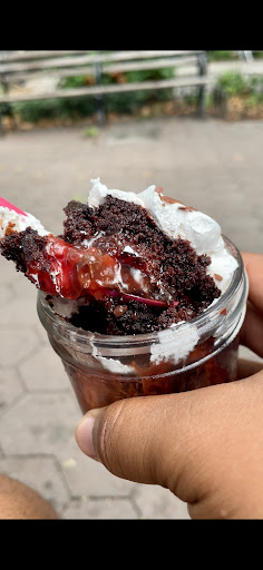 Ok, so my friend who lives in Hells Kitchen, mentioned a few weeks ago, that I MUST go to Huascar Bakery. He said that he and his partner goes all the time, and that itās one of the best bakeries in the city. Me being a foodie and food vlogger, I was instantly intrigued! I was also a bit disappointed that I never heard of them :-( . But as I say, better late than never, right?! I made it my business to get to Huascarās! So, I pull up, and I start filming outside the bakery, first. Itās a small, humble-sized bakery, with cute decor. The inside is small and cute. I love the utilization of the board, where they have their name, as well as the menu items. The wall with the flowers on it is sooo cute! I really dug it and even got lost in its beauty for a few seconds! Their display case of all their goodies is thee most tempting site to behold! They think they slick lol. I wanted EVERYTHING! The woman who was working, was a DOLL! Ugh! She was the sweetest, and most helpful. We joked and laughed and talked about sweets we love, what I should try that was seasonal, I mean we had a great time. I really appreciated her and she contributed to the experience just as much as the baked goods. The owner then came out to greet me and he was super sweet. He asked about my food vlog and we chatted with me for a bit. I expressed my excitement to try his cupcakes, considering he won Cupcake Wars on Food Network! Ok, speaking of the cupcakes, Iāll use that as a segue to get into what I ate! The first beingā¦ā¦yes! A cupcake lol. I tried the guava peaches and cream cupcake, whichā¦.girl. This cupcake was done beautifully. It was topped with this guava cream cheese frosting, crumble, and drizzled with guava. It was stuffed with peaches and LOTS.OF.GUAVA! This cupcake was fluffy, lite and airy. It was absolute perfection, and it was truly a flavor journey that I didnāt want to end. I also tried their key lime pie, which was beyond impressive. I have had thee best key lime pie from Key West, and Huascarās Bakeshop holds its own! They DID.THAT.CUSTARD! It was the perfect amount of lime flavor, nicely rich and laid atop a thick graham cracker crust. It was topped with lime zest and whipped cream. This pie was made with love. You taste it in every bite. Lastly, I tried the Black Forest cake which was cakeā¦.at its finest. The cake itself was MOIST! Paired with the cherry and whipped cream??? Fuh-get about it! It was served in a jar, which, just made it more fun to eat for some reason. Again, I was soo disappointed that I was late to the Huascar Bakeshop party, but Iām glad that I finally got to go and enjoy its divinity! Gooooooooo...