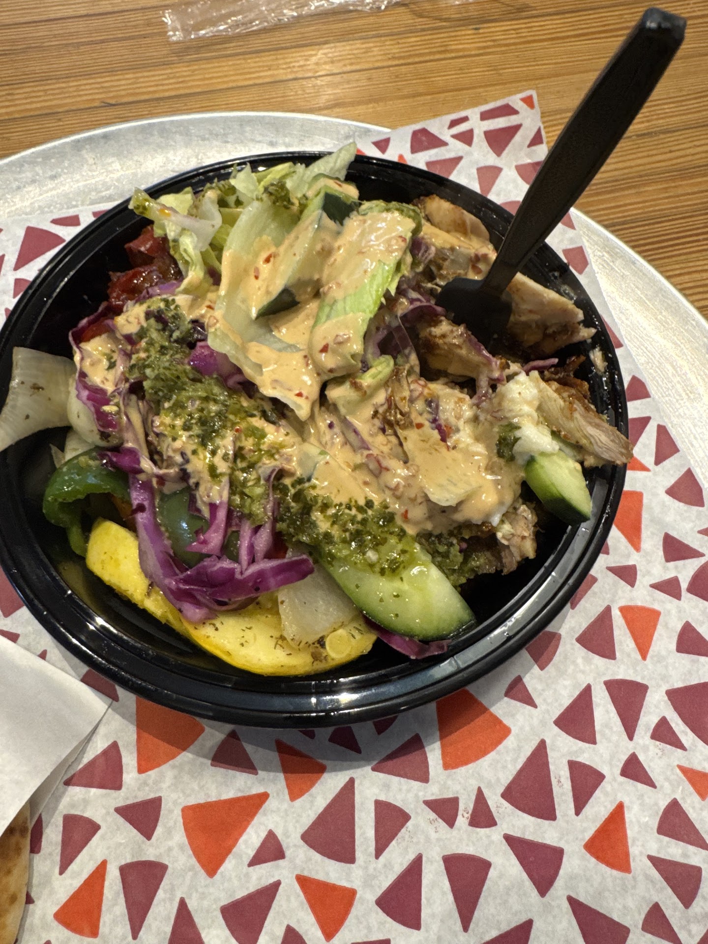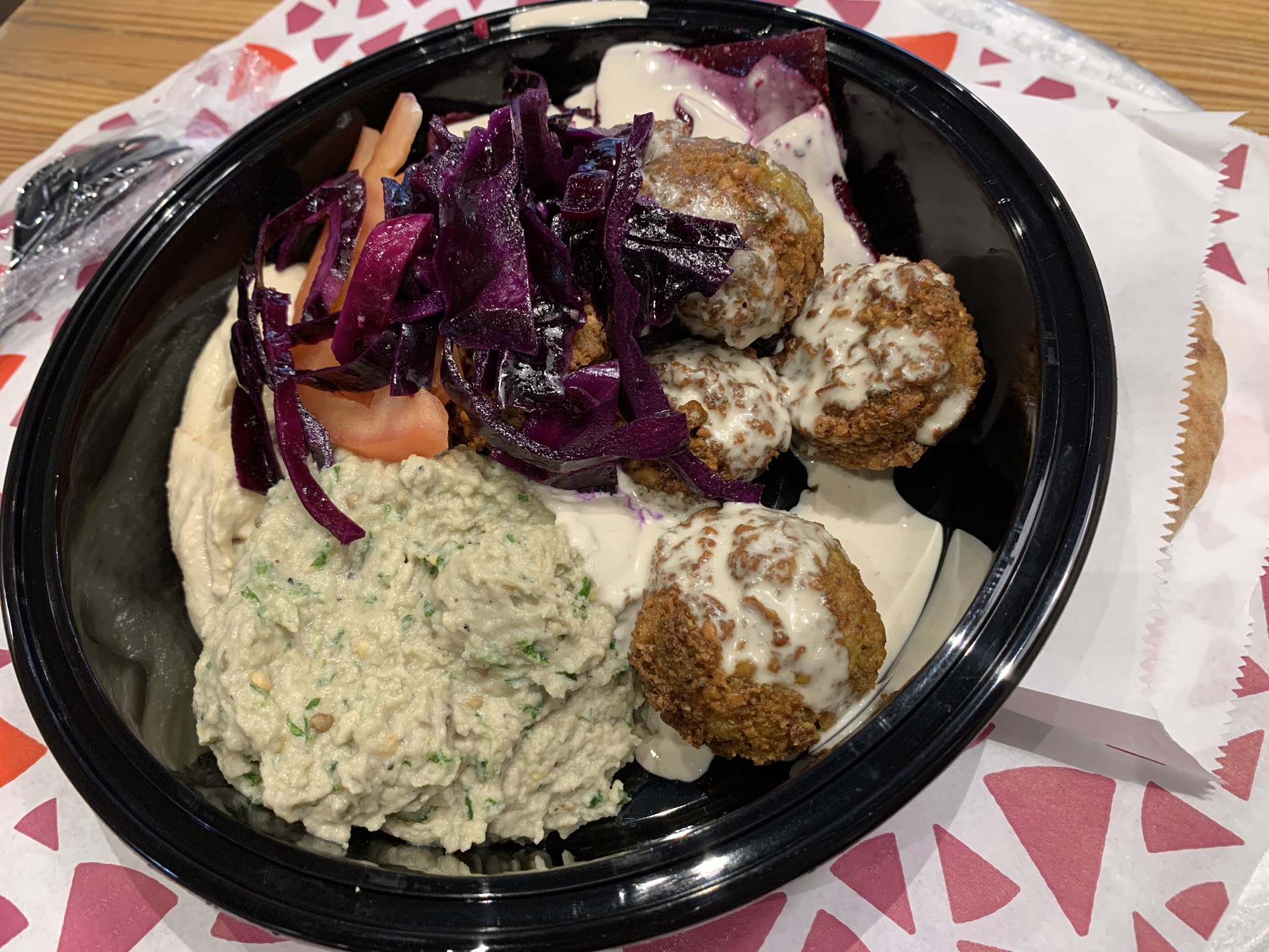 I only gave three stars not for political reasons, but because my bowl (Turkish meatballs, eggplant đ, rice đ, mushroom đ hummus, cucumber đĽ, & feta) was just good enough, like a cheaper version of Naya. But then again, I'd been to Ayat Staten Island recently, so maybe I was expecting the...
