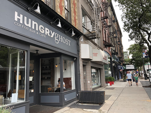 Read moreWhen you find yourself near the Barclay Center, near the Bergen Street subway stop, or simply in the vicinity of 6th Avenue and Flatbush, AND in need of a coffee-fueled respite (or other beverages), this Hungry Ghost Coffee Bar & Café is, simply put, YOUR place. Not only do they serve Stumptown coffee, which is on my list of my top ten coffee roasters, they also serve delightful pastries, sandwiches and bite-sized treats. The interior of this café is painted in shades of to-die-for warm slate grey with warm accents of lighting, matched with absolutely stunning wooden chairs, tables, and shelving. At some tables, laptop use is restricted, which is, again, a sheer delight to the café patrons (like me), who love to sit, talk, and enjoy their coffee breaks in traditional style. But to all laptop users, there is ample laptop seating space at the long bar table, and to my guess, the WiFi must be top notch. And lastly, the barista is a master in latte & cappuchino foamed milk art. Ask her to make you one, and you’ll be...