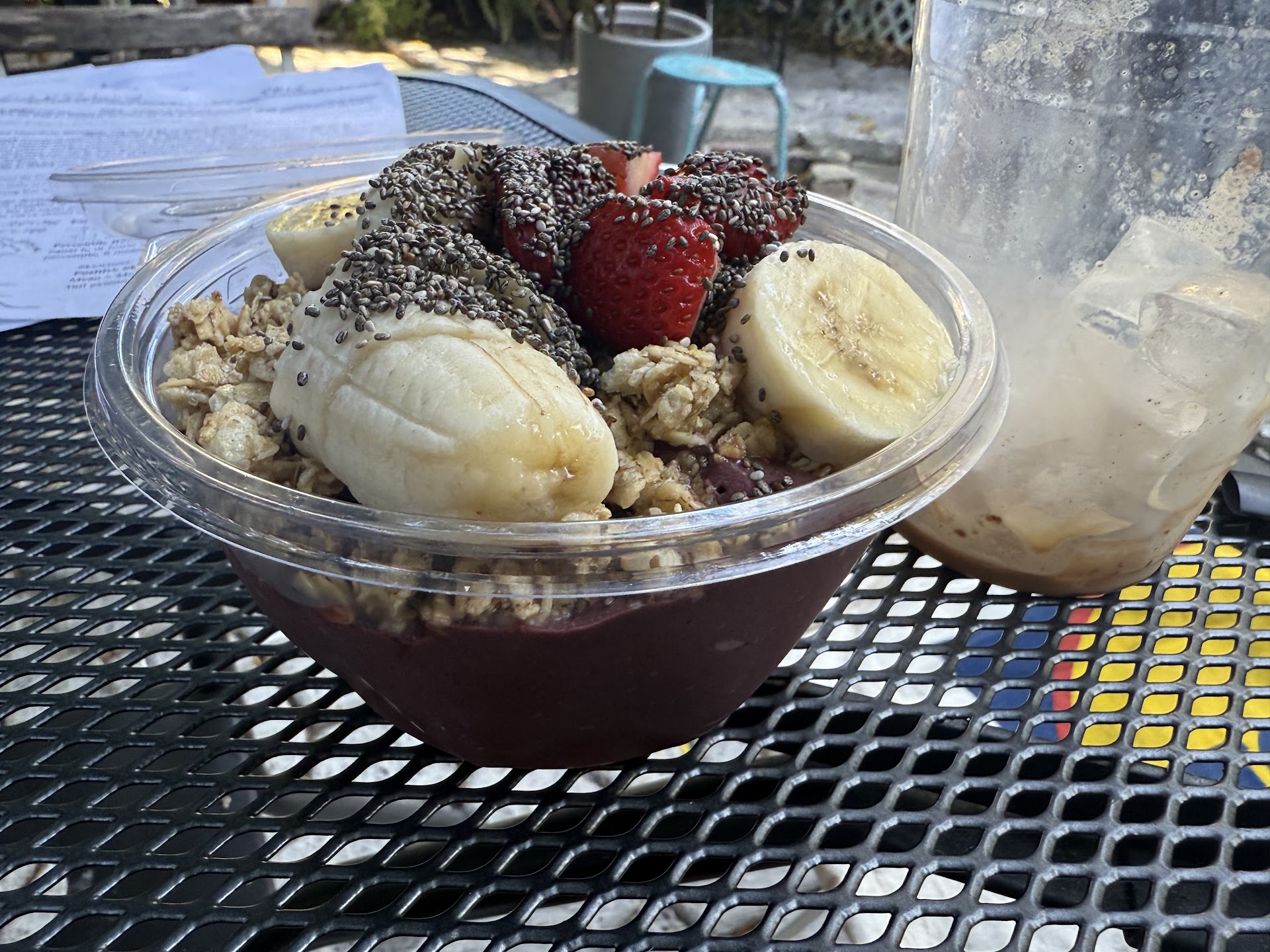 I ordered an iced skim-milk chai laté- It was a bit on the sweeter side but it was tasty overall. I also had an açaí bowl option #1 which was ok, nothing special- portion size was generous.