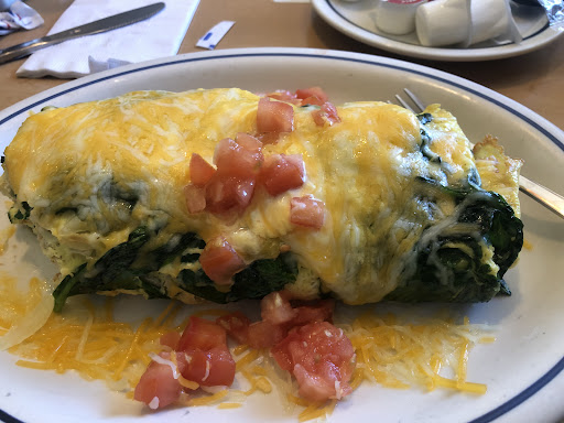They DO NOT give you utensils to eat with when you order TO GO. There’s a sign on the wall that specifically says if you want any utensils you have to PAY for them. It’s the principle. If I’m paying for my food TO GO, I expect to have disposable utensils to eat the food with without being CHARGED for it. How cheap of this franchise. Another huge thing is they don’t accept online orders through the IHOP app which makes zero sense. I checked a few in the area and it seems like online pick up orders just isn’t available in the app so it shouldn’t even be a listed option. They only accept from uber eats, Grubhub and DoorDash. So what’s the whole purpose of even having an IHOP app if the restaurant itself doesn’t use it? Food was mid at best. Eggs Benedict was a hot mess and they didn’t even put hollandaise sauce on it. Very dry no sauce and the wait time was long.