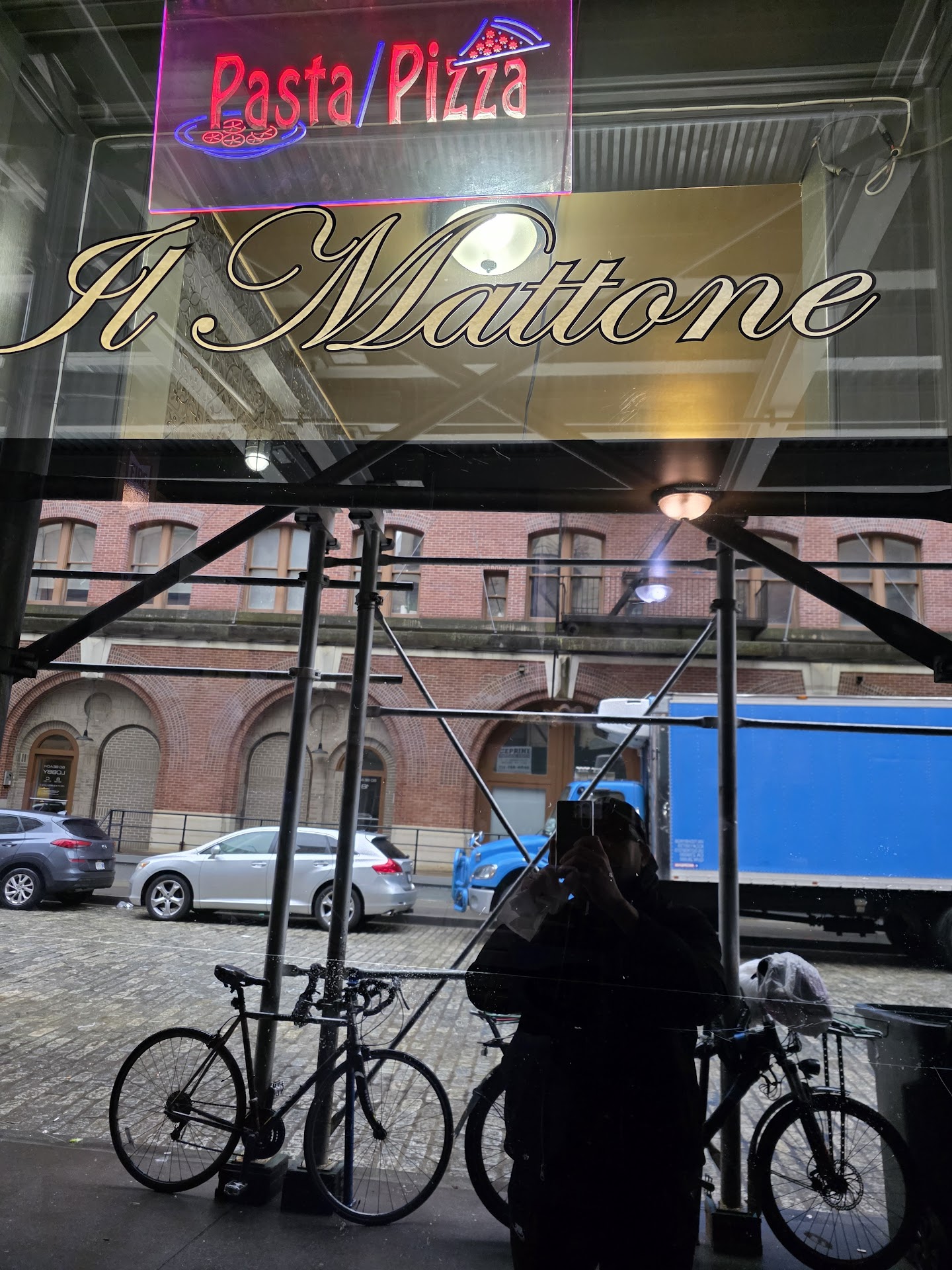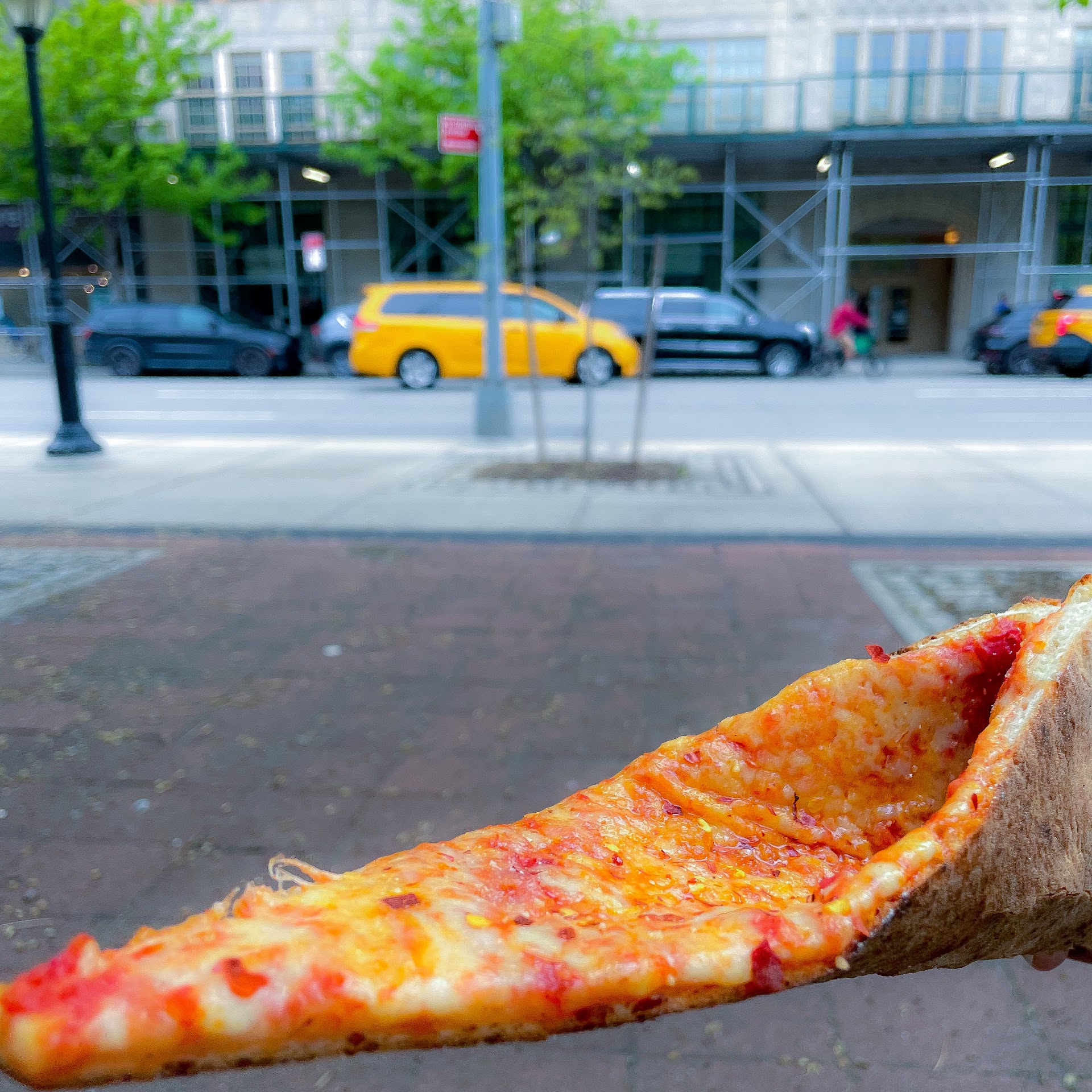 while there is no lack of good pizza places in NYC—Il Mattone hits this standard easily and serves up a very good to great classic NYC slice. grabbed two slices for lunch, and the ‘zza did not disappoint. the slice is everything you want in the old school New Yorker pizza. the slice is thin crust style—fairly crispy and a little bit of chew in the crust. the sauce is seasoned well balanced between saltiness, sweetness, and Italian spices. a soft melty blanket of cheese topping it all. all combining to make one delicious slice that will sate the hangriest of eaters. served super hot as i prefer. plain cheese slice, $3 + tip