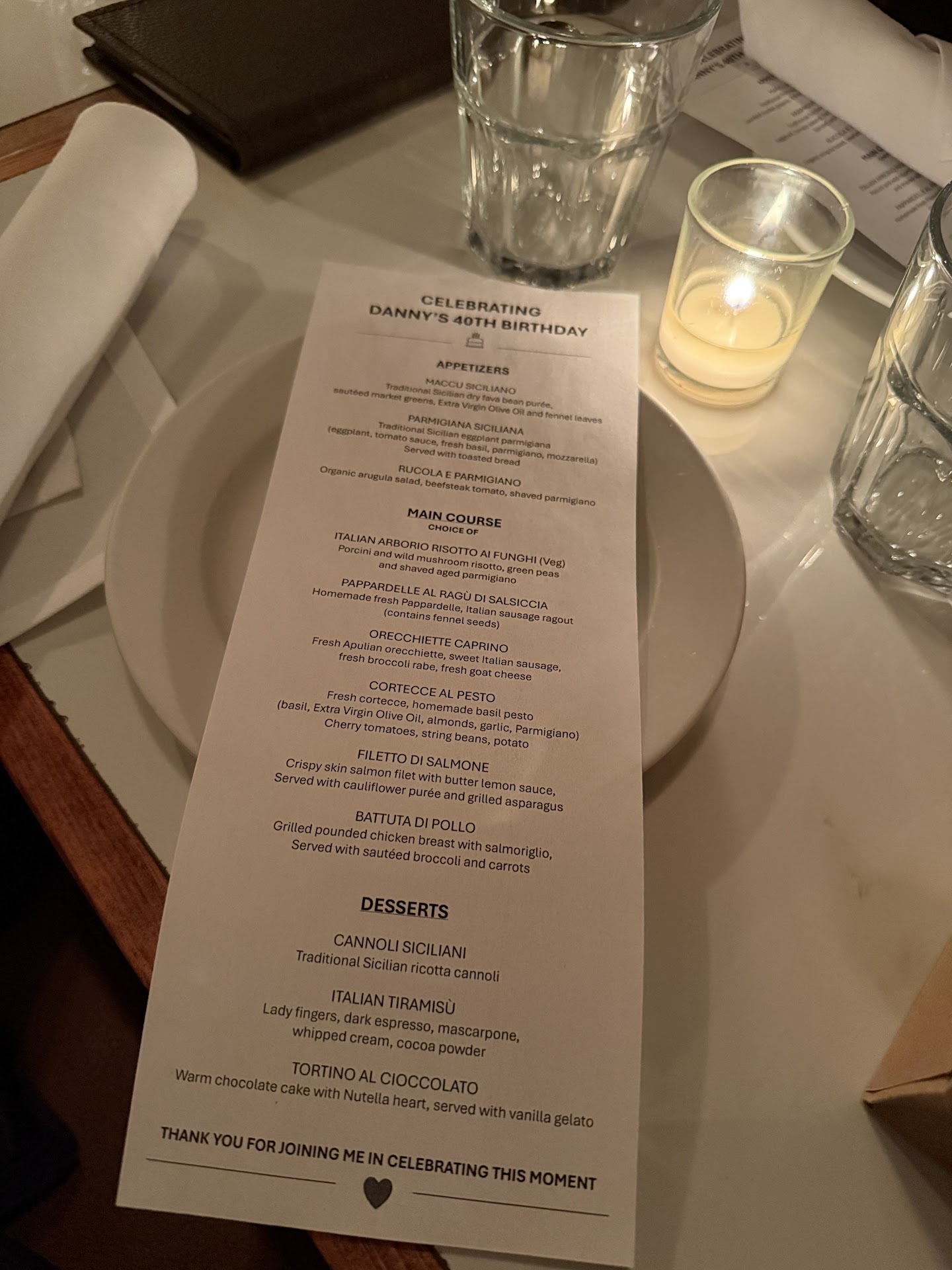 Thank you, Lino and Gregory, for making my 40th birthday an evening to remember. I cannot recommend Il Melograno...