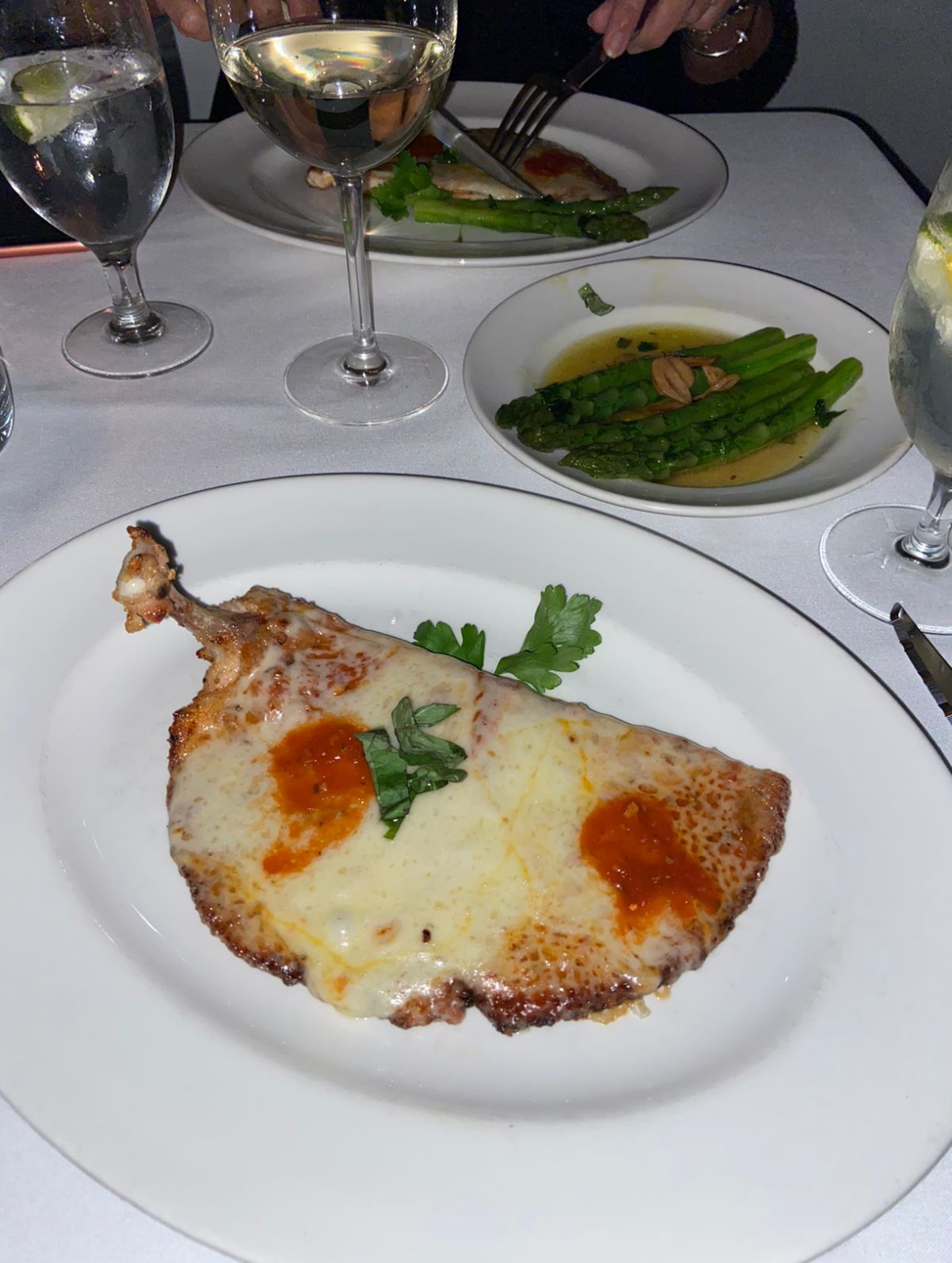 the only warning i have about this restaurant is that service is very slow because itâs more of an experience. we got to the restaurant at around 4:40 and we didnât leave until 6:30, if you donât mind a long dinner than this is the place to be. il mulino has locations all around the states and iâve only ever been to the trattoria at the swan hotel is disney world. both were amazing! they started us out with a hunk of parmigiana reggiano aged 24 months ,which if you ask they will give you more of. that was free which automatically makes it good but it was very wonderful. afterwards we received bread which consisted of a crostini and focaccia, both were amazing but be warned the crostini is filled with olive oil. afterwards we were offered fried zucchini and traditional bruschetta. the tomatoes used were so fresh and i absolutely loved the zucchini. i will say for reference we didnât get our menus until 5:10 but we knew what we wanted so we ordered quickly. for appetizers we ordered the baked clams and the eggplant melanzane. i wasnât a big fan of either, the eggplant was a little bland and the baked clams were a pretty basic flavor. the entrees are what stood out. we ordered the chicken parmigiana (which is what theyâre known for), the chilean sea bass (a special) and i side order of the il mulino pasta (vodka cream, black truffle, pancetta, mushrooms and peas). we had the parm in florida too and both agreed that one was better because it had more sauce and cheese but this one was also amazing! the bass was the winner of the entrees, it was so buttery and came with broccoli rabe and a lemon sauce which was amazing! the pasta was our least favorite of the three but still good. there were not many mushrooms and neither one of us got pancetta but there were loads of peas if thatâs what you like. the sauce was good but didnât particularly taste like vodka sauce or truffle. at this point we were completely stuffed but the kitchen was so kind and sent us a dessert platter of ricotta cheesecake, tiramisu and flourless chocolate cake paired with homemade whipped cream and zabaione. the chocolate cake was the winner and the whipped cream was also fresh and slightly sweet. the tiramisu didnât feel so fresh and was the least favorite of the three. the cheesecake was extremely light and had an underlying flavor of lemon. overall the experience was amazing, we had many waiters because we were the only party in the restaurant for the majority of our meal. the manager was also very attentive and nice. the atmosphere is quaint and wonderful with photos on the walls. i highly recommend this restaurant but just know that it will not be...