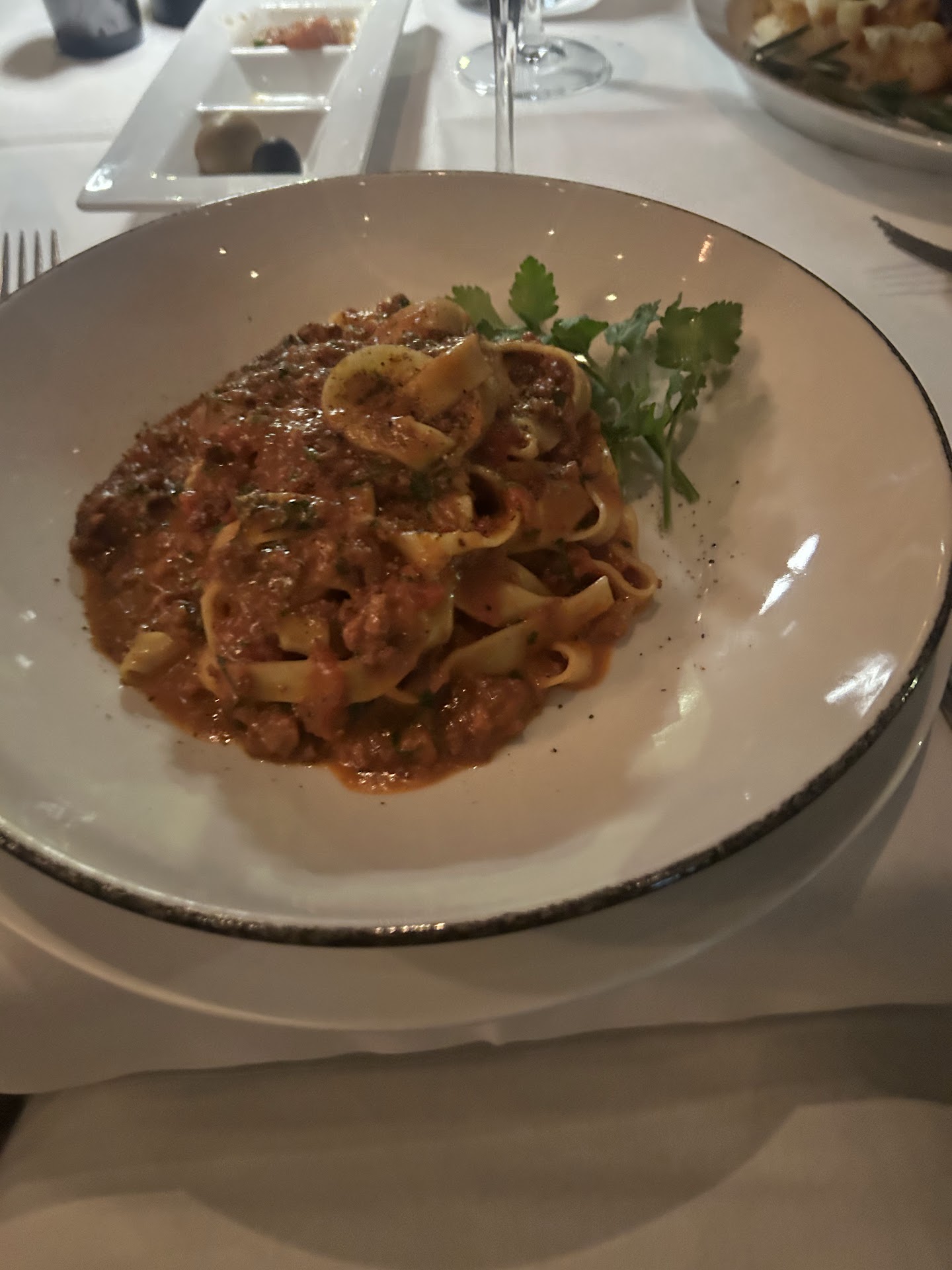 The ravioli filling was acceptable but not exceptional. The sauce was pleasant and enhanced by the fresh truffle. We were not displeased with our meal, the service to refill our wine and water was attentive and pleasant.