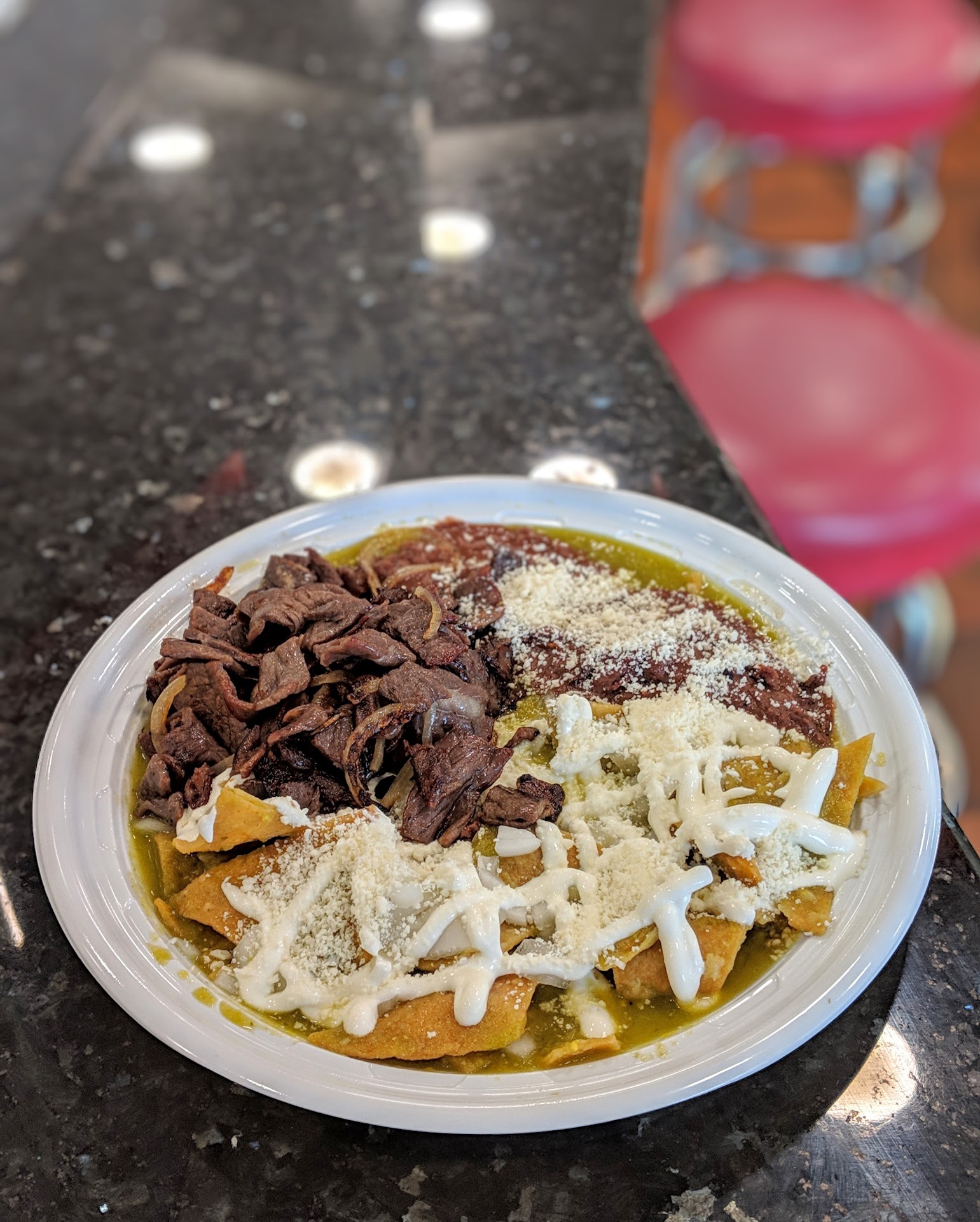 MÉXICO 🇲🇽 Eat the World NYC review: Just above the entrance to the 36th Street express station on 4th Avenue, Ines Bakery always has a lot of foot traffic in front and shows itself off only as a place to buy large designer cakes. Examples in the window are for weddings, quinceañeras, and birthdays.Without exception, I have overheard orders for cakes or cupcakes being places and/or finished orders being picked up each time I have eaten here. The bakery is famous in the area and folks from every background use them for their parties. I have heard a man place an order for a bar mitzvah, and last time in a Russian woman was ordering cupcakes for a party the next day. ° That being said, first and foremost in my mind are the great breakfasts at great prices available here. Depending on who is operating the cash register a plate of chilaquiles loaded with meat runs $7 or $8. In addition a nice portion of beans will grace the plate in a puddle of either red or green salsa before being topped with crumbled cheese...