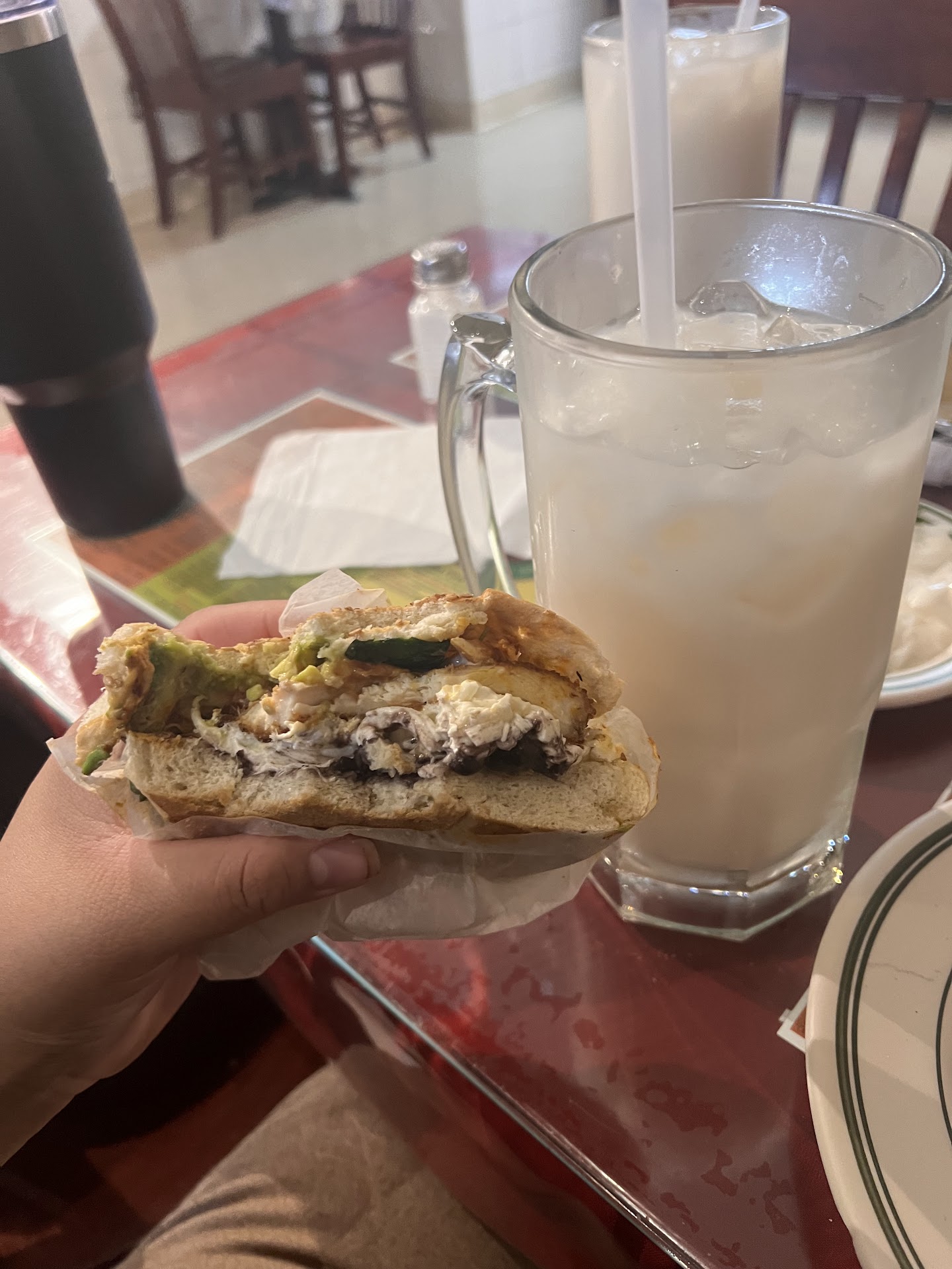 We ordered the sopita de pancita and cemita milanesa de pollo with two large horchatas. The portions were huge and the pics donât do it justice. A tiny mom and pop, hole...