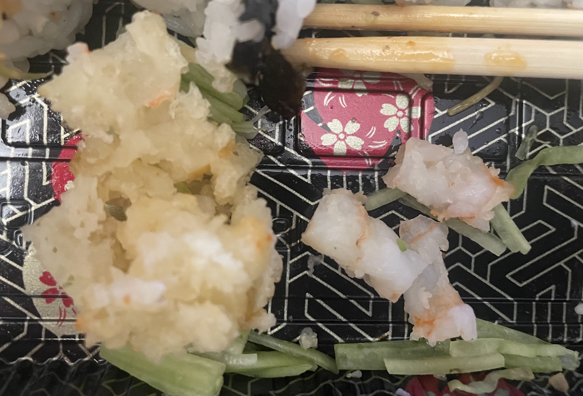 In the picture you can see the tempura to shrimp ratio 😂 they have some nerve!