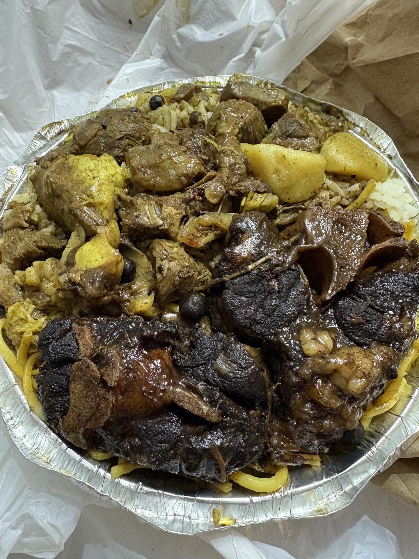 When I first went in the establishment, I was a little skeptical. The inside looked fairly old, and there was no menu to be seen; it seems this is because they vary some of their entrƩes and sides day to day except for their staple jerk chicken (this makes me assume that they actually care about the food they make and are more authentic, but its just a speculation). However, the lack of a menu was no problem. Since the staff was so nice and accommodating, they gladly showed me all the available food one by one and told me the price of what I wanted to order. I asked for a larger size platter, but I would've gotten a smaller size if I had known how generous they were with the servings beforehand. I got a large platter of jerk chicken, rice and peas, collard greens, and an empenada on the side, totaling about 18$ (13$ large platter, 4$ empanada), which compared to the jerk restaurants I have previously been to, was great value. The jerk chicken was nice and juicy, the greens went well with the rice, and the empanada with their sweet sauce was amazing! Definitely worth their hype, and I for sure will revisit them in the future to try out the other options.
