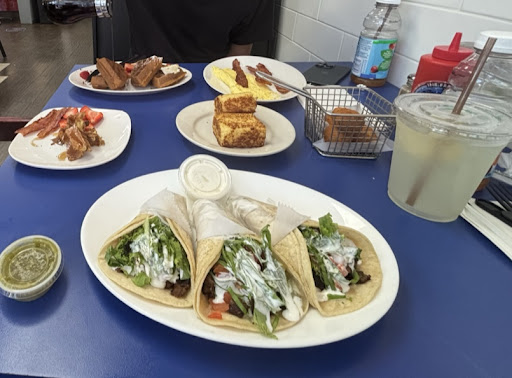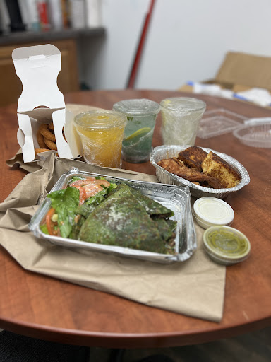 This Jimbos location is awesome. Anything you order is gonna be a delightful meal the staff who answer the phone are very friendly helpful & on point. I really love this restaurant they even make delicious drinks passionfruit, lemonade Etc. My favorite are the hash brown patties the griddle cakes And that cornbread!! Even the delivery guys are great very nice establishment. In the photo I ordered a spinach Quesadilla with steak and spinach inside Onion rings, hot honey Chicken with cornbread A passionfruit lemonade and I tried one of the new energy drinks made by the Jimbo staff...