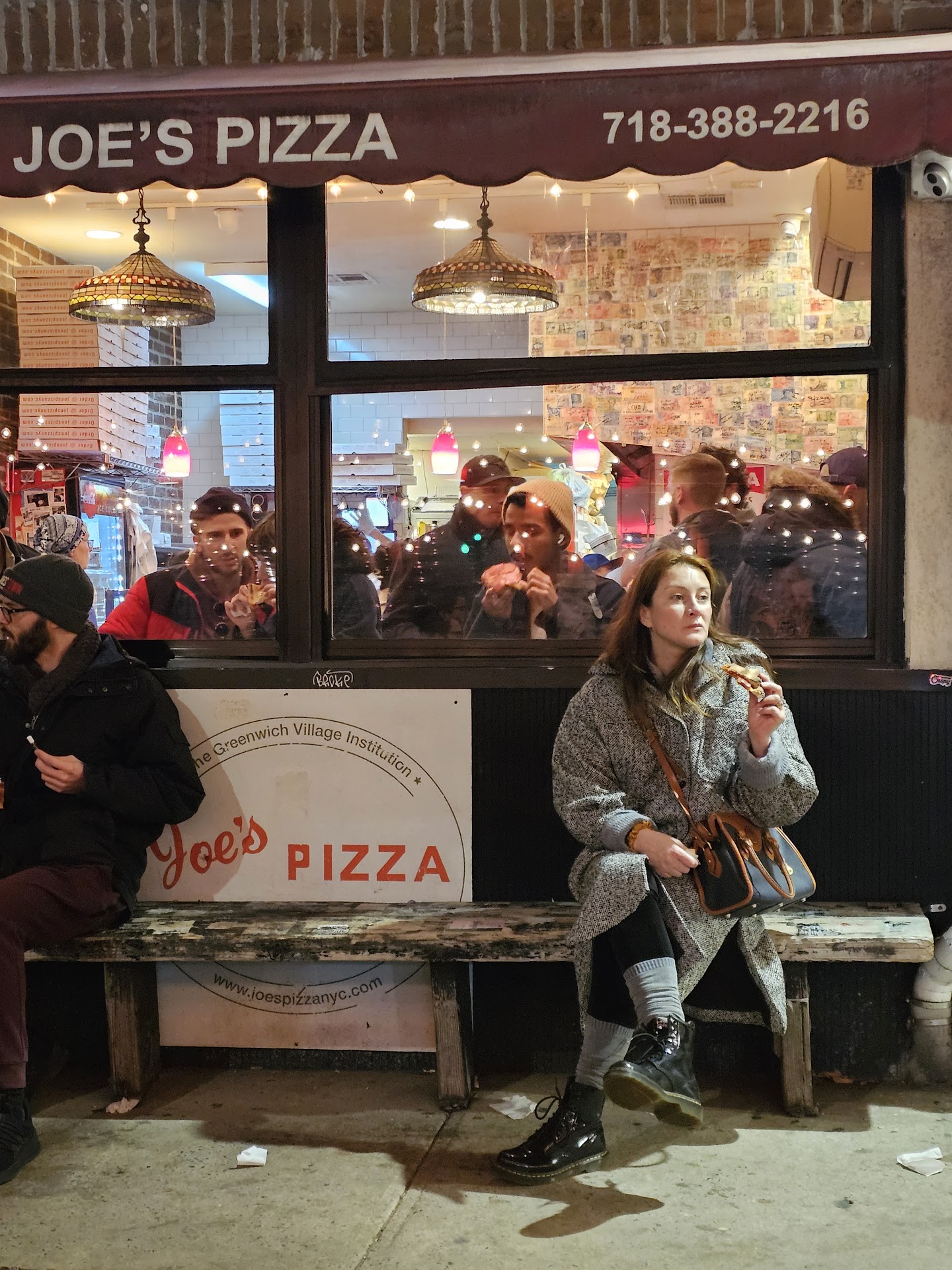 Read moreBrooklyn's Bedford Joe's Pizza is a true gem, offering an authentic slice of New York City both literally and figuratively. This bustling corner shop, though small and always buzzing with activity, manages to deliver some of the best pizza I've ever tasted. The highlight of their menu for me was undoubtedly the pepperoni and cheese pizzas. The crust on each slice was perfectly crisp, the sauce was flavorful yet not overpowering, and the cheese - oh, the cheese! - was melted to gooey perfection.But it's not just the food that makes Joe's Pizza special. This place has a unique charm, highlighted by the walls adorned with photos of Hollywood stars enjoying their pizza. It's like stepping into a little piece of history, a testament to the quality and fame of their offerings. Each photo tells a story, adding to the vibrant, almost electric atmosphere of the shop.Joe's Pizza is the epitome of what a classic New York pizzeria should be - fast-paced, unpretentious, and serving up slices that are consistently delicious. Whether you're a local or just passing through, stopping at Joe's is a must for anyone seeking a quintessential NYC pizza experience. The combination of great food and the shop's brush with stardom creates a dining experience that's both memorable...