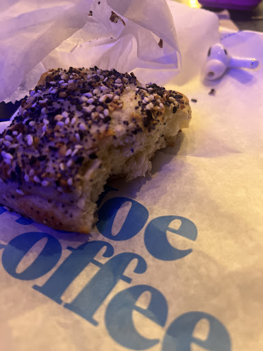 The coffee here is not bad but the stuff is not nice enough. One of them totally ignored me. Other one was giving attitude for no reason. I don’t understand the annoyance. Maybe discrimination? Because both of them were pretty kind to the other people. I was a barista too so believe me I know the hustle but it’s not that hard to say hi or welcome in to the customer even if they are not your type of people. I like how LGBTQ flag is a part of their decoration but others are not welcome maybe? Idk. Most of the items on their menu is absent. This tiny thing was the only savory option so I got it. Not fresh at all, very small and “For $5” Also they are not able to warm things up because they don’t have a microwave??? What kind of coffee shop is this? Their restroom is like a public restroom. People came in only to use their bathroom without ordering anything so it was crowded only because of the people who wanted to use the bathroom and the workers didn’t care. I wasted my $12. I regret even giving a tip. Not coming again...