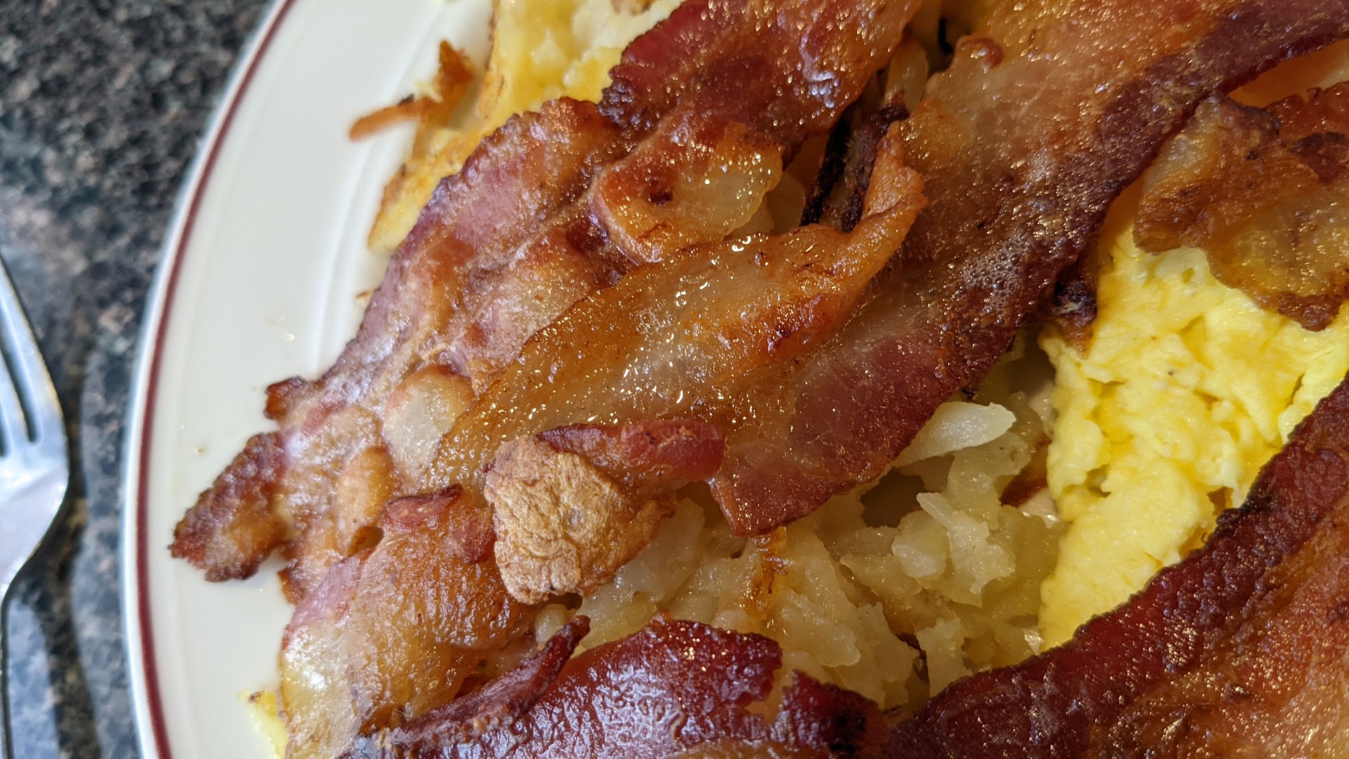 September 2023. I've noticed a subtle change recently from proper home fried sliced potato to frozen shredded potato and today it was not fully cooked through. Needs to be crispy edges and browned nicely. Mine was cold in the middle, and totally white potato. Don't let your standards slip. Please!