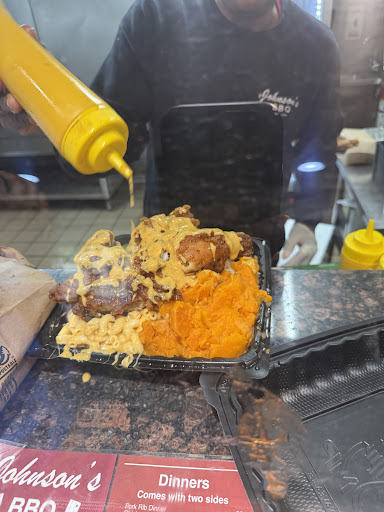 Meat Quality: Okay I’m probably going to ruffle some feathers here..Here’s my honest view. The ribs were cooked to the point where the meat falls off the bone.That’s usually a good standard for ribs. I prefer mine with a little bit of give.I don’t think they use a dry rub.I love flavor and different blends. Unfortunately I didn’t really get that here. Although the meat is good they need season to add more character. Now the mustard sauce. Most bbq is accompanied with bbq sauce with a tomato base. Johnsons uses a mustard base. I personally don’t like it. 2.5 out of 5.