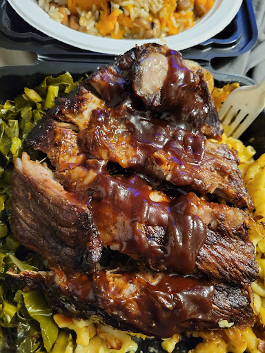 Read moreOk? where do I began this time around...! I had been a costumer for over a decade but it's only a once in a blue moon that I'll actually get some ribs from there.. Last time I've had ribs here was back in about 2008... They were great then... So today I decided I'll go get ribs. I traveled way across town mind you. When I walked in the place the owner he at first was talking about his relationship experience with younger women this type of talk was so uncalled for I don't need to know you're too old to keep up with younger women.. But anywayđ¤ his loudness and his whole demeanor was insulting to say the least. When it was my time to step up to the counter I could not believe the way this man carried on as if I was a piece of rib and cornbread and he just wanted to slop me up and take me to "London" because YES he asked if he can 'take me to London'... I was just so embarrassed and he would not stop... So I got my two orders or ribs and carried on when I got home to try them they were horrible burnt and over cooked... Sort of like old meat you just keep reheating.... I won't throw this place under the bus just yet although he doesn't deserve my money after today but for $28.00 in New York City that's a great deal... Buyers beware inspect the meat before he throws that horrible BBQ sauce on it... Get your own sauce at home any store bought is better than there.... And if you are a lady take your man with you...