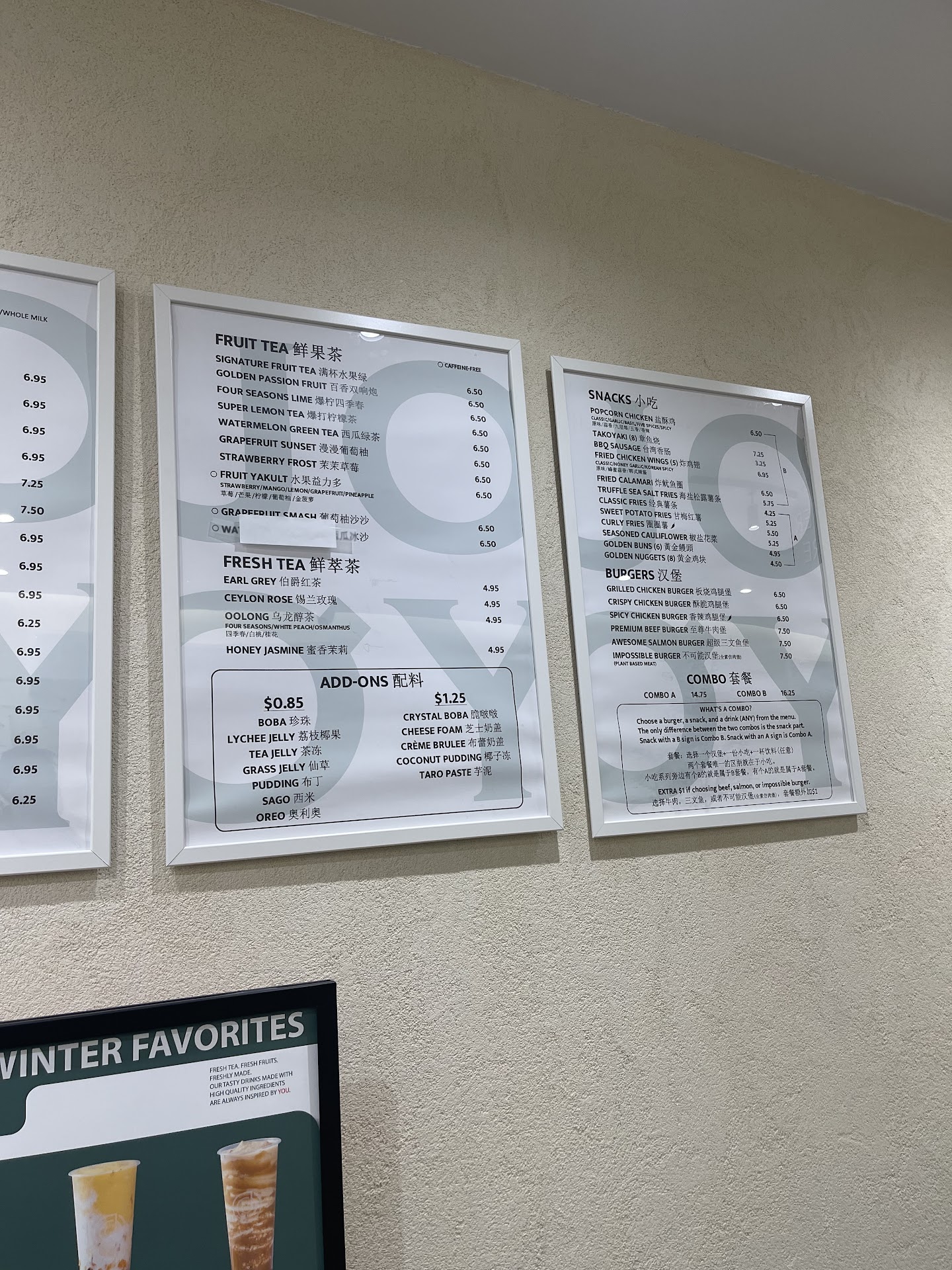 Ā Ā Ā Read moreThis place only cares about money . Items that say Milk Tea have no milk in it and it costs extra . Combo burger items , they say to pick any drink , but , on UBER , the seasonal , most expensive drinks ($1 more than others ) , are labled as NOT INCLuDED ON COMBO . Not only that , but , they charge you $1 dollar more for beef , plant based and fish patties for a burger combo . It is as if they want to make you believe if you buy 3 different iitems , you will be discounded bigly . But in reality , they impose pricing limits even if a drink , burger and 10 pieces of small chicken cost $20 after taxes . I order from here to taste their popcorn chicken . It is the only popcorn chicken that tastes like chemicals and MSG powder , which is a bad thing , but good for when you want to eat and experiment with chemical flavoring food . Interior is also always crowded with...