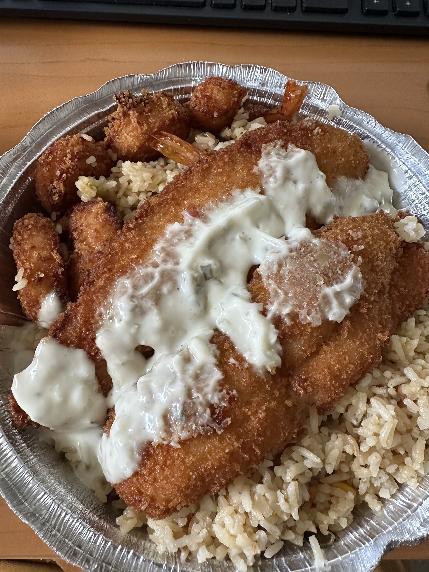 Read moreNumber one fried fish spot in all of Jackson Heights. I couldn't help but eat my delicious number 9 combo which contains Fish, Shrimp, Scallops, Crab Stick and your choice of rice or French Fries. I have been coming since I was a little boy and the quality has not changed. Bless this amazing place. 5 stars. I will always come back for your combo meals and your delicious fish soup. Prices are very well as $10 for this I was able to share with a friend and still be full. Run don't...