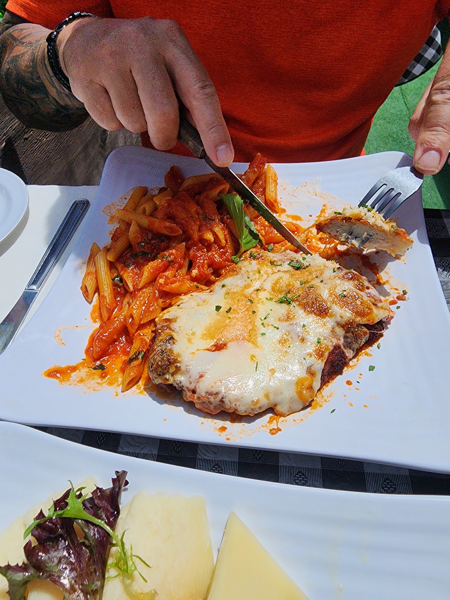 Read moreMy husband decided to bring me and my 4 year old here for dinner since we were in the area. We sat outside and were promptly given menus. It took some time for our waiter come to us, and a couple of the gentlemen working alerted us he’d be coming soon. Perhaps they were short on table servers, because he seemed busy inside as well. Our water had some black stuff floating in it (pepper?) and they took care of giving us a new pitcher of fresh ice water. The food was good, I got the pasta pomodoro. Although tasty and portion size good, I don’t know if their claim of fresh made pasta is true. My observation with our server was that he was overwhelmed and he wasn’t exactly friendly with every encounter he faced outside, whether it was someone at a table or someone walking past asking him questions. I brought my daughter to the restroom when we were done eating before we hit the road (we live in NJ) and the bathroom’s orange tiled sink is in need of repair. I would have taken a photo but my husband had my bag. It’s an accent sink that has small orange tiles all around but it’s leaking somewhere/appears to be quite withered in some areas and creates a pool right at the entrance of the bathroom door. I had to carry my daughter over it and alert the person who was waiting on the bathroom line about to enter the restroom I was leaving, to watch out. We took our leftovers to go and to my dismay I have to clean my car mats (thank god they’re made for spills) because our bag although stacked well, whomever in the back packed our stuff, did not bend in the aluminum folding on our to-go trays all the way through. Probably won’t be...