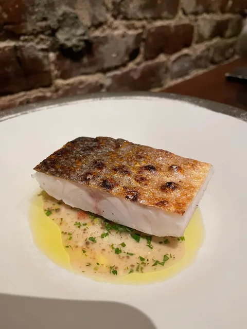 (4) The branzino was dry aged beautifully. The texture was perfect. Crisp yet soft on the inside. It was a little too salty for the though. The sauce was waaay to acidic tho. The asparagus was a nice botanical touch but it couldn’t save the sauce from making the mix of the two extremes of salty fish and acidic sauce blend together.