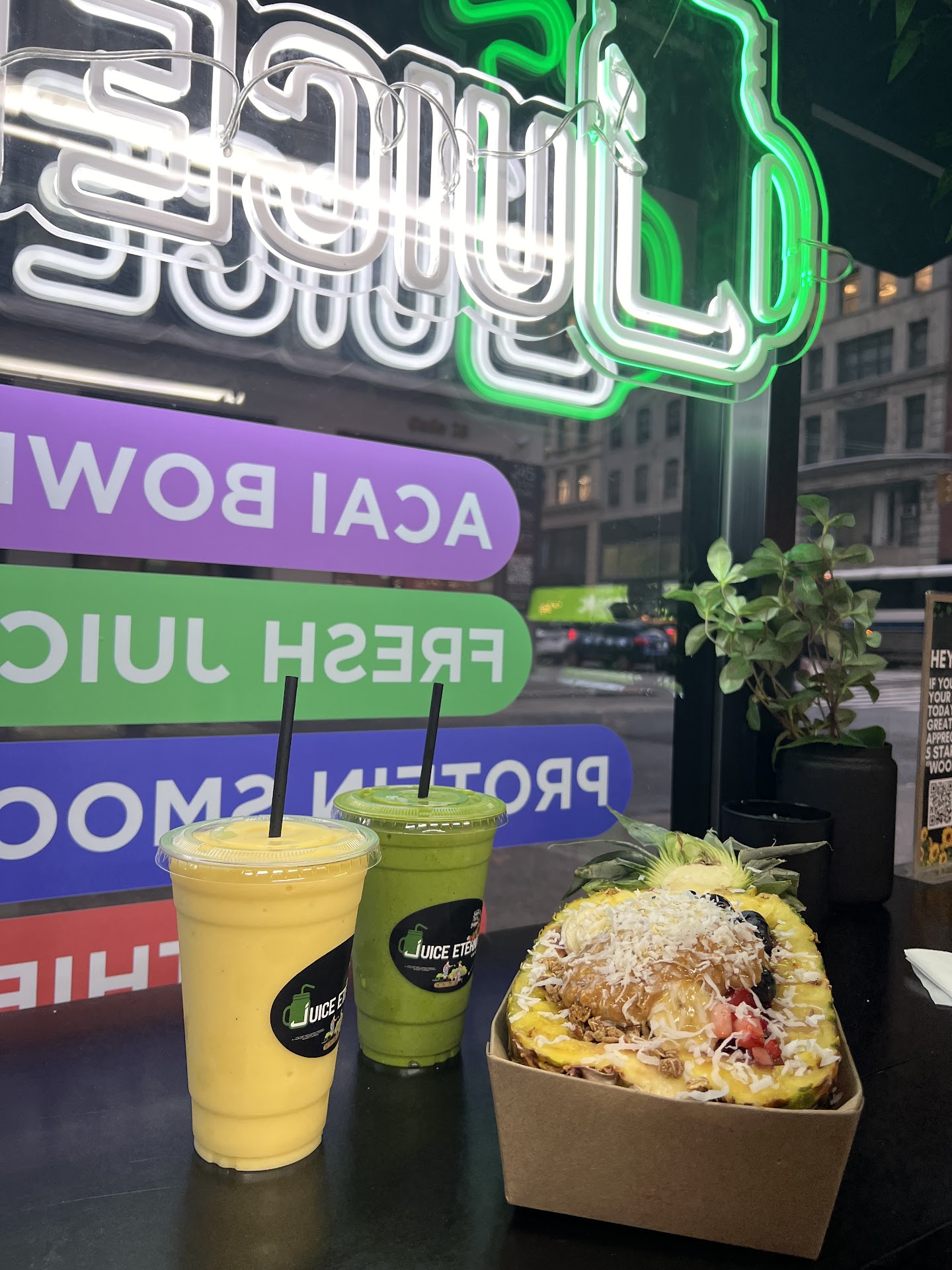 Juice Eternity is a must-visit if you’re into fresh, quality ingredients and vibrant flavors! I recently stopped by and tried their Heart Beet juice, a Peanut Protein shake, and an açai bowl, and I’m honestly impressed. The Heart Beet juice was refreshing and tangy. The Peanut Protein shake was creamy and filling, great for a quick boost. The açai bowl in a pineapple was such a fun touch. The staff was also really friendly and knowledgeable, ready to recommend options based on your preferences. Highly recommend if you’re in the mood for something fresh, tasty, and satisfying!