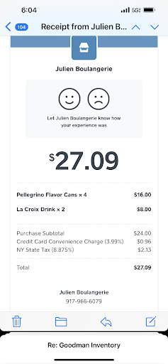 Read moreNice new pastry shop opened on 3rd Avenue in place of the old T-mobile store. I loved the place until I got home and I looked at my credit card receipt that I received by email from Julien Boulangerie, NY (3rd Ave), and saw they charged me $1.10 for a 3.99% credit card convenience Charge. I think that is very low class behaviour and a huge rip off to the local community. Everyone uses credit cards these days and I just consider that is really abusing one’s clients. There is no sign warning one that if you use a credit card you will be charged an Extra 3.99% fee. I consider that is probably also illegal. It’s one thing charging premium prices like $4 + Tax for a small can of favoured water To Go, (totally my choice to pay that) but please don’t sneak/steal another 3.99% from me for greed, because it makes me think the owners of Julien enjoy robbing their clients blind. Stay away, there are better places nearby like Breads Bakery or...