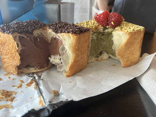 Read moreThis place is mediocre at best. However, they charge a premium price. Service leaves much to be desired, so do the actually pastries, unfortunately. This place was so hyped up on IG, which is why we planned to go there in advance, expecting those unique square fresh croissants with crème filling oozing out of it… but it couldn’t be farther from the truth. The creme inside was stiff, the dough was rough - all in all - the pasties were not fresh. They tasted like they were 2-3 days old. For $9.50 per piece ?!?!?! We didn’t even finish the pasties we got. Together with not-so-welcoming service - this place left an impression of being one of those overrated NYC overnight viral success stories, that either gave up on trying to do their best, or never actually cared enough to go beyond paying some influencers to promote them on IG, so that the unsuspecting public runs over to give them $10 for their 3- day -old pastry… oh, also, their bathroom was out of order. While they have at least 10 tables and serve coffee and other...