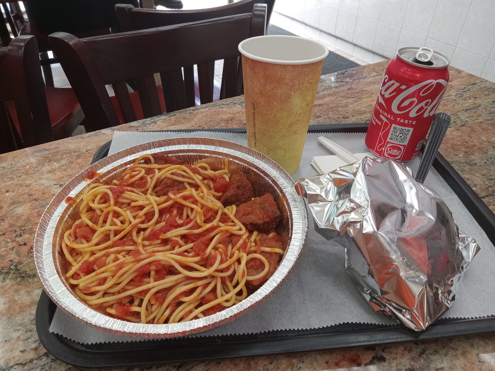 Ā Ā Ā Read moreGot annoyed when the cook motioned me to stay in one spot Indicating that he did not like me watching the cooking process I just like watching people cook because I do not (cook) And it wasn't busy Only 2 other people in the resto But when I got home with my spaghetti and meatballs All was forgiven The portion was good sized I was expecting the pasta to be soggy but it wasn't The good part was the SAUCE AND the MEATBALLS Kudos to the cook Hopefully next time when people watch him cook he will take it as...