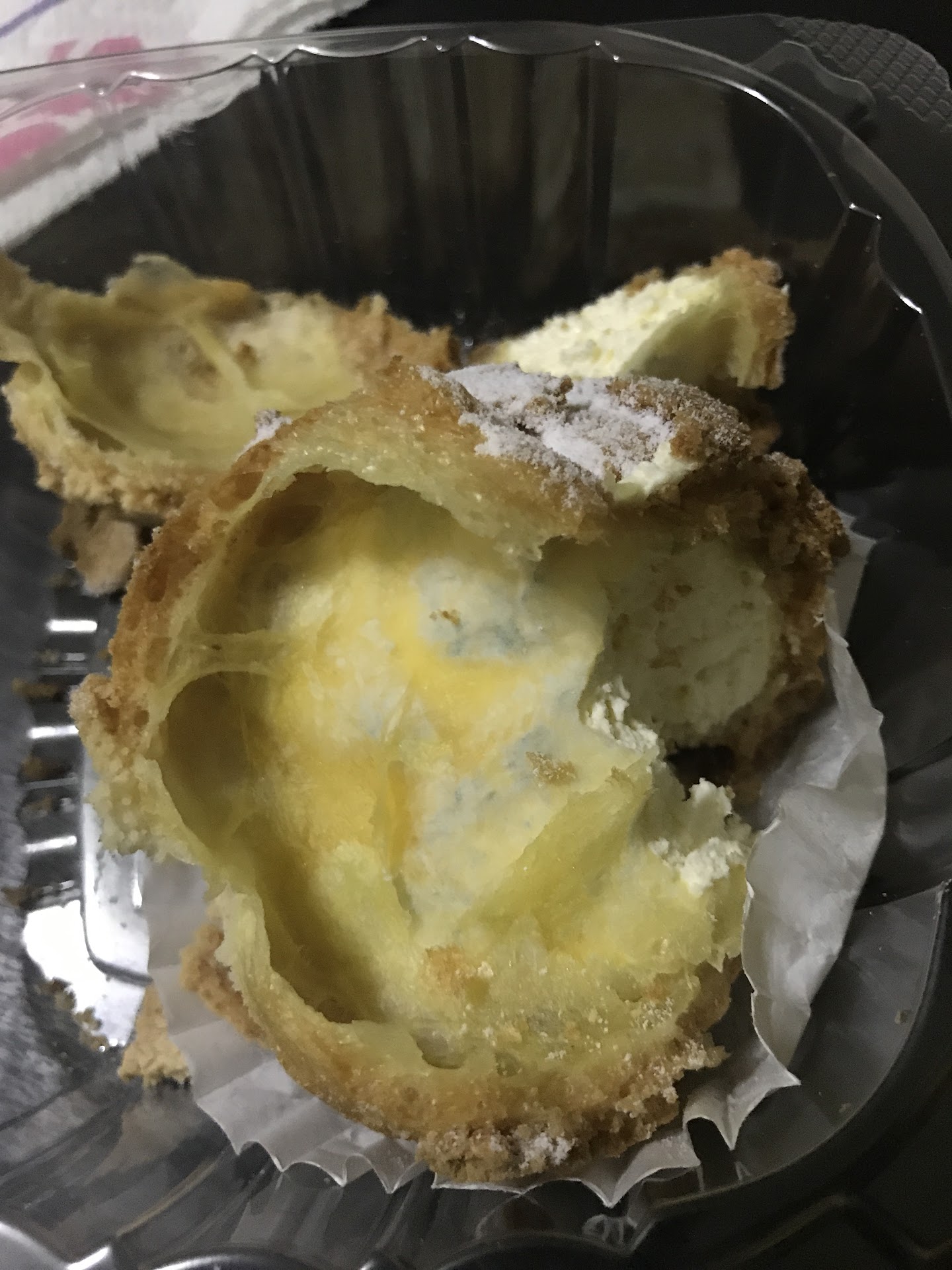 Read moreI just bought this cream puff. After I tasted twice I have some unpleasant feeling, I found it covered with mold inside!! No one would know that unless they break the layer of the puff like me. I don't know why I cannot upload my photo here, but I did uploaded under other photos. You will see how bad they control the product and the environment of it! How come they sell such molded puff to customers? Now I am so afraid I will get diarrhea tonight...