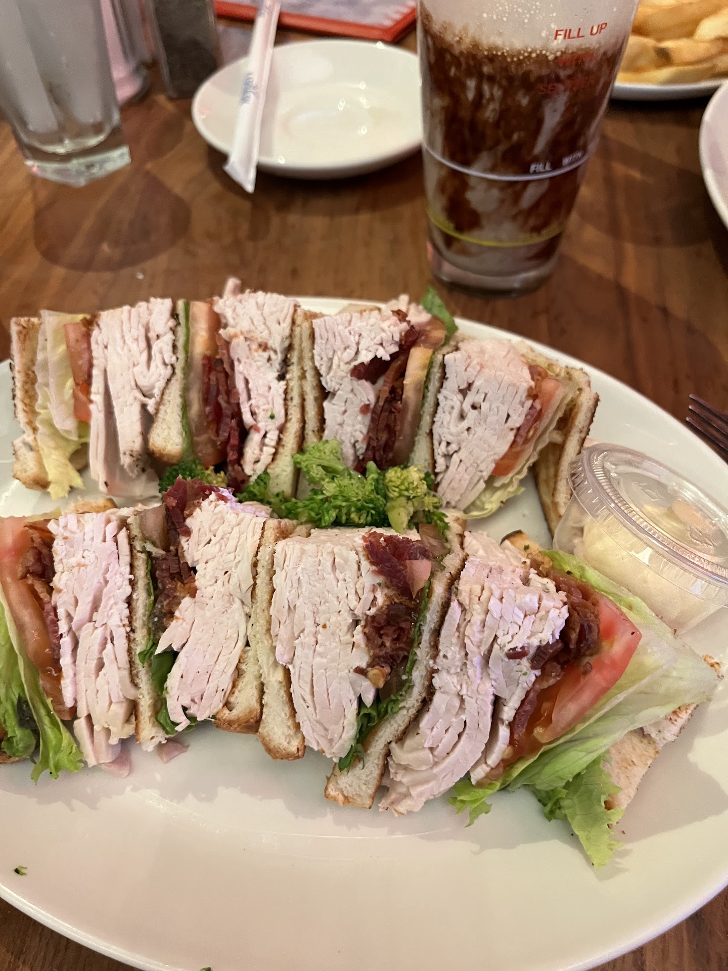 It is so noisy, chaotic, crowded. Tables every where and chairs always in the way because no one cares about being in the way. Service was okay. Took 15 minutes to get a glass of water but then only took 5 minutes to get a milkshake. Odd but fine. Food came out rather quickly too. Milkshakes are great. Club sandwich is blah. Mac and cheese is good. Fries are good. My husband loved his open faced roast beef. Way too full for dessert but the cheesecakes do look awesome. Server was trying to push dessert on us before we even finished eating. Probably trying this speed up table turnover even though the family next to us has finished eating not long after we sat down, said they were just going to sit to kill time before a show, and the dad was watching the Masters on his phone. Not sure why we were getting rushed? But again, whatever. Times Square is weird.