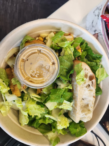 I came here for a quick lunch. I placed my order online and I picked it up. I didn't see my order on the shelf for pick-ups. The cashier had it behind them and handed it to me when I told him my name. I had to ask for a fork, napkins, and a bag. The salad was a bit lacking. I thought they would have chopped and/or mixed the dressing but I guess they probably didn't want it to get soggy. The salad was tasty but I didn't like that the chicken was cold and it was chicken patty instead of chicken breast. It seems like it was a chopped-up nugget. Disappointed with the price. I would expect a higher...
