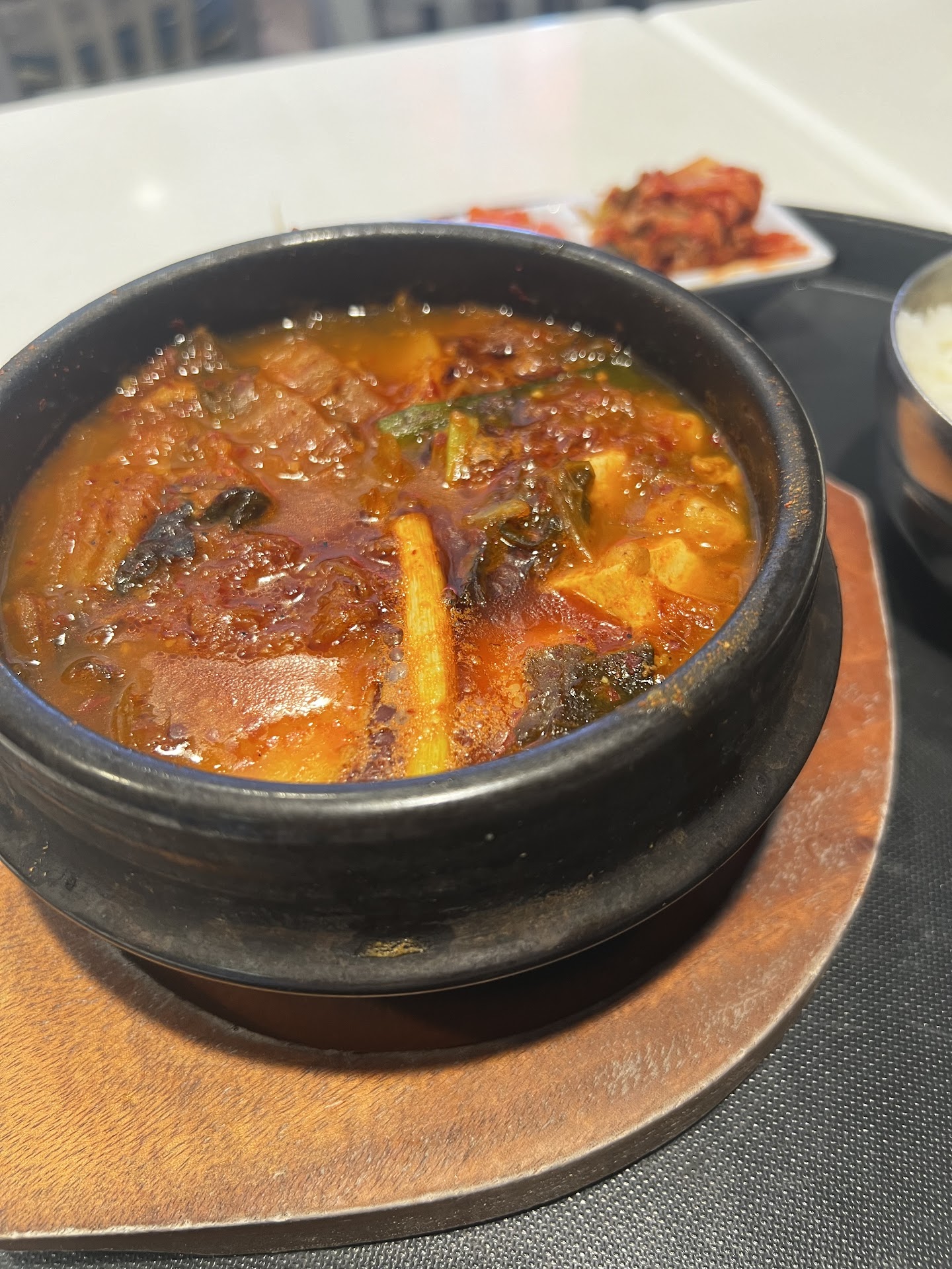 as for the food itself, you really canāt go wrong with any dish with their reasonable pricing and filling portions. but, i highly recommend the sundubu jjigae! banchan is always included regardless of the dish, and all of the soups come with a side of rice and seaweed.