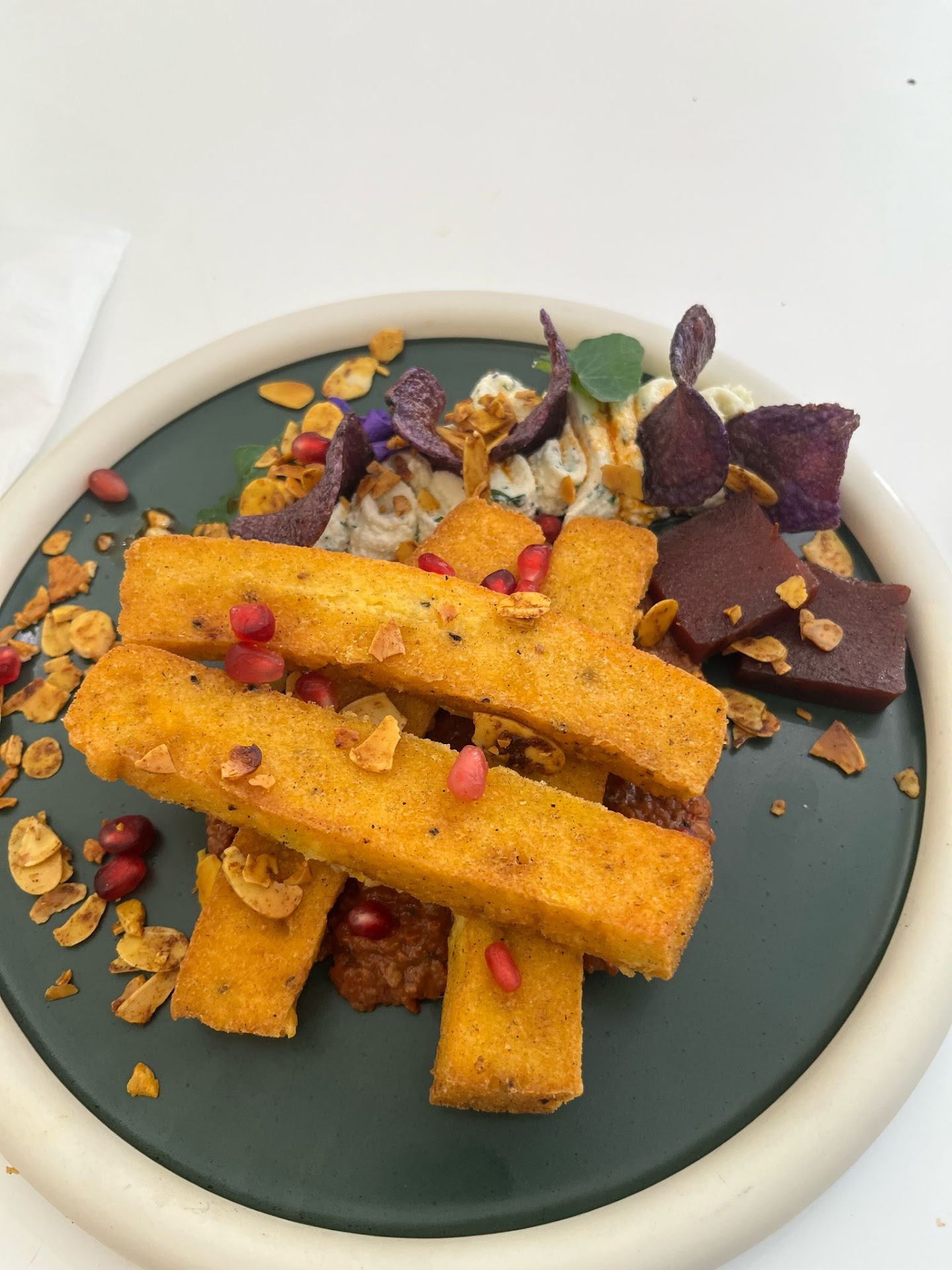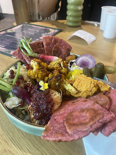 A delightful fusion of flavors, our meal was a culinary triumph from start to finish. The Mediterranean mezze set the tone with vibrant, fresh bites—creamy hummus, smoky baba ghanoush, and crisp falafel that danced on the palate. The inari pockets sushi followed, offering a delicate contrast: sweet tofu skin cradling perfectly seasoned rice, each bite a subtle symphony of umami. Dessert was no less impressive, a finale of textures and tastes that left us savoring every last spoonful. From appetizer to main to dessert, every dish was crafted with care and flair—an unforgettable feast that celebrated both tradition...
