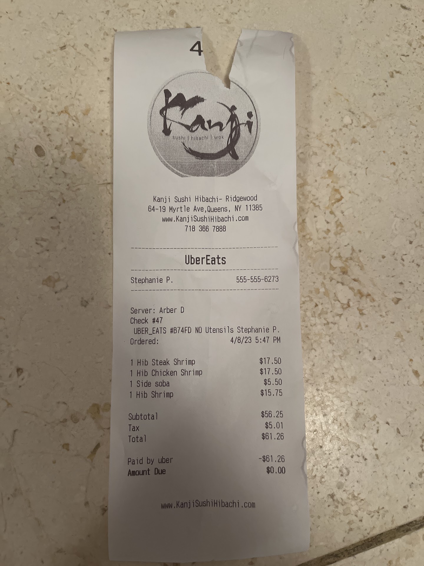 Reply on 4/11/23: More than happy to provide you with my order number. Insinuating I didnât order to make yourself feel better isnât good customer service or the way to speak to someone who wasted their money on your food. I ordered on Saturday 4/8/23 via Uber Eats at 5:47pm and my order number was 47 and my server was Arber D. Please provide that refund you were speaking...