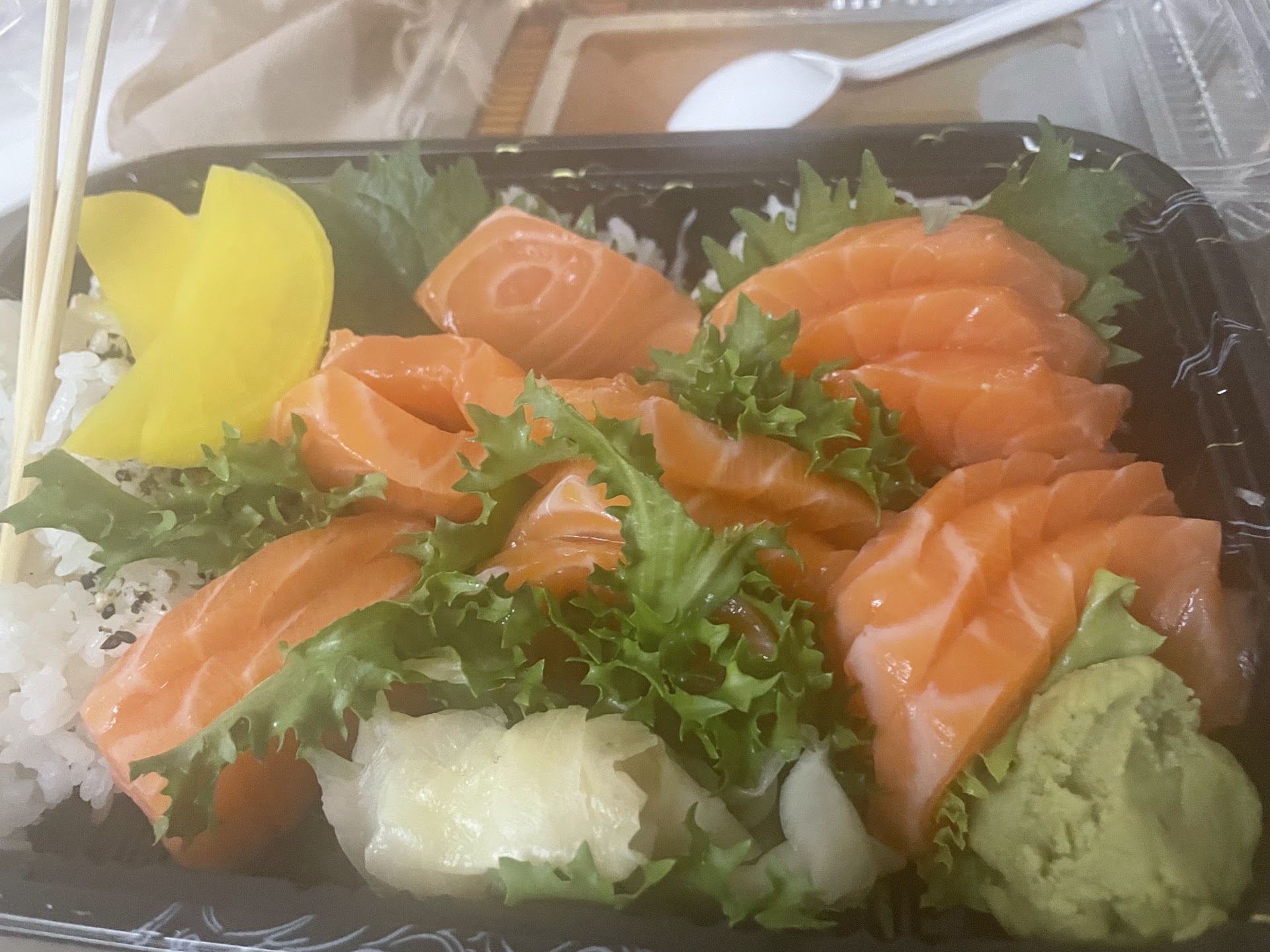 Food - average. Not sure if people in this review has had true fresh fish (fresh fish to me is what you get in omakase) but this place uses standard grade sushi fish. Some has a stronger smell and is more mushy (fatty) than others. Portion size is good. The beef don was not bad but most of it was rice. Miso soup was good that came with the Don and dinner entree. Dinner entree with pork katsu was good. Rainbow sushi was average. Not bad but not the best. The tempura appetizer was not good; only the shrimp had flavor but all the vegetables were not seasoned. Would have given 3 stars for food.