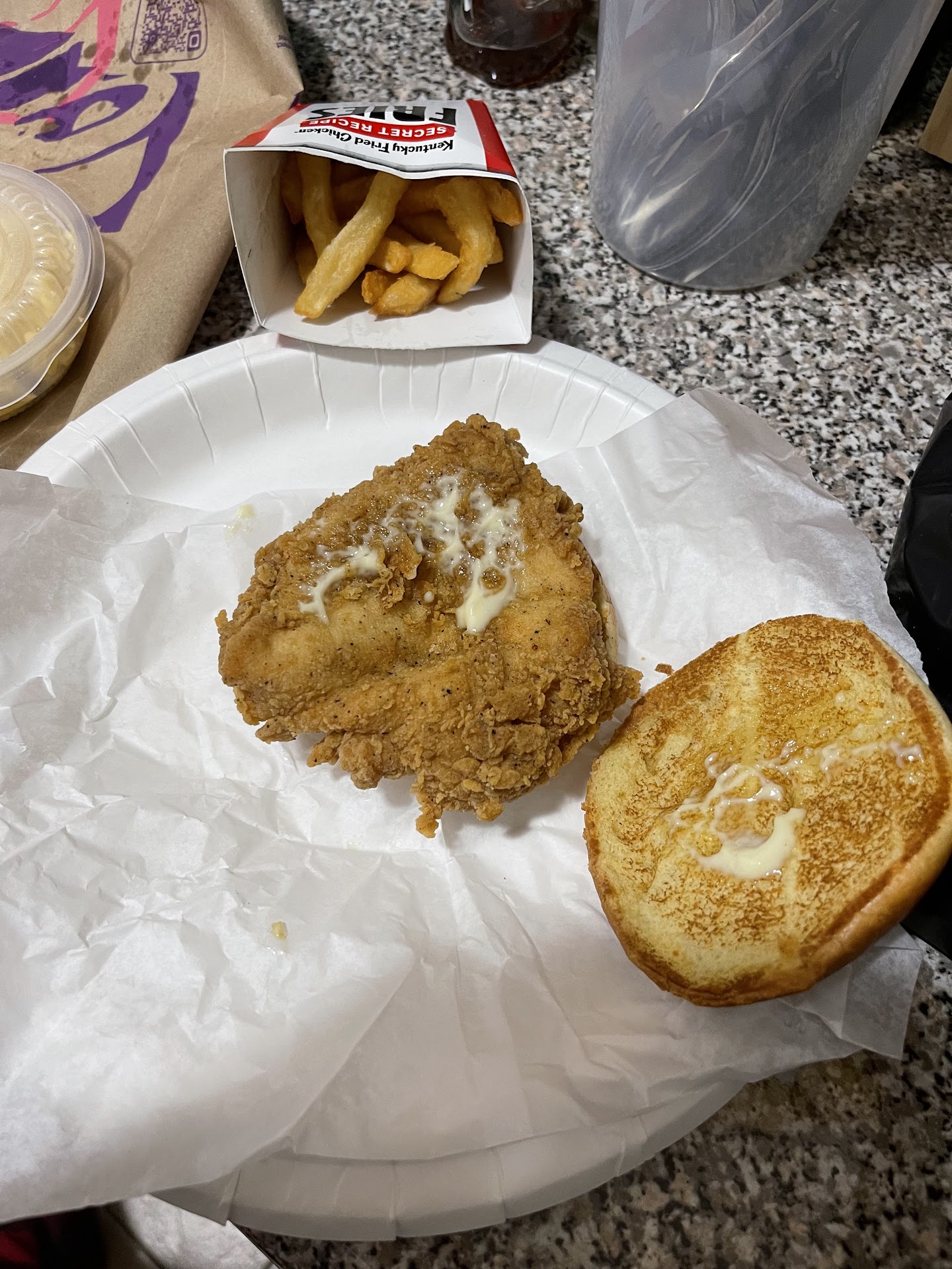 Ā Ā Ā Read moreThis is very sad so My husband and I ordered KFC from this location on Uber eats how sad can this be a little box of fries not barely any fries in it a mediocre chicken sandwich that was so sad it didnāt even taste spicy after I ordered a spicy chicken sandwich my husband ordered four piece chicken with biscuits two extra biscuits and another two extra biscuits only got one biscuit chicken was called it was supposed come with mashed potatoes and gravy never receive that at all coleslaw mediocre I will say this though the one enjoyable thing that I did enjoy was the macaroni and cheese sadly I will not be giving us any more of a star I wish I could give us zero stars fries were soggy and cold and disgusting no flavor the chicken sandwich that I ordered not spicy no flavor to it taste like they left it there overnight I will never order from this KFC on Uber eats or any app ever ever again if they cannot seem to get an order right My husband could barely finish his head around it as much as he could no flavor and I thought KFC was supposed to be good awesome like the good all days sad locations make for bad names for...