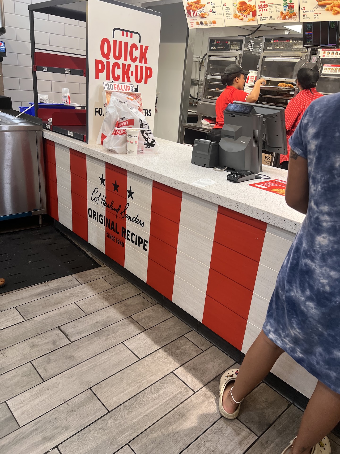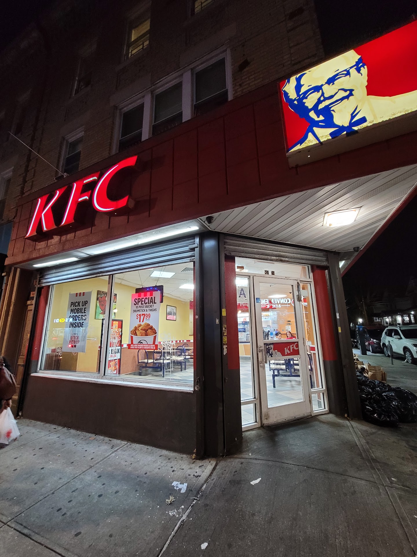 KFC in general has fallen off to the point of no return but this place is the worst of the worst. A few years ago I ordered some food and it was so bad. My fiancée and I started getting the chicken from Popeyes and only getting the sides from KFC (mashed and Mac n cheese). Today I decided to give them another chance to redeem themselves which was a huge mistake. We ordered wings, a fill up box, chicken little meals and cookies. Let’s start at the beginning as I opened the bag I took everything out so that I can split between him and I. Took out the chicken littles and they were so messy! Looks like they slapped the sauce on the bread and then threw up mayo on it. So nasty. Next the fill up box. When I opened it up I notice there was one breast and one thigh. I only ordered one breast so what was the thigh for? Also I ordered the breast to be extra crispy and instead I got an original recipe breast with a crispy thigh. I started looking for the wings that my fiancée ordered and they were nowhere to be found. I guess they thought by giving me a $1.29 thigh it would make up for the $6.99 wings. Well thanks for the gesture but NO. Regardless of what went wrong the chicken tasted horrid. Last but not least the cookies. I ordered 12 for 5.99. McDonald’s cookies blows their cookies out of the box hands down!!! These are cookies you buy in a box in stop n shop. McDonald’s are freshly baked . A word of advice DO NOT EAT HERE ITS GROSS. IM DONE FOR SURE. Continue at your own risk...