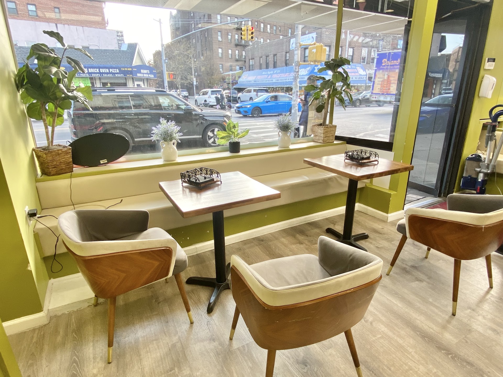 Very clean, nice atmosphere, delicious food, and pleasant service. This place is very clean starts from the entrance. There are some outdoor space and tables you can sit there enjoying a good weather and a cup of a hot coffee or tea. Inside atmosphere is very relaxed and without any pressure on you that you have to eat and leave or take something more. Soft chairs and a bench added some good vibes to the atmosphere of the restaurant.