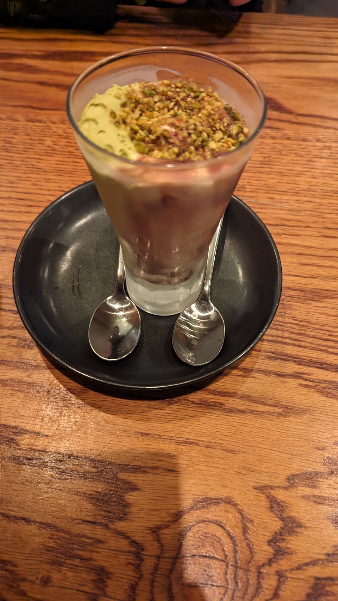 The pink lady was said to have an interesting taste although might not be eye catching with the pink paper wrapping. The Miso soup however, was said to be pleasingly tasteful with all natural ingredients. As far as our wine it was delicious, being sweet and strong. We would've given five stars, but there were quite a few bees that seemed to be buzzing around quite often,but I would still stop by this...