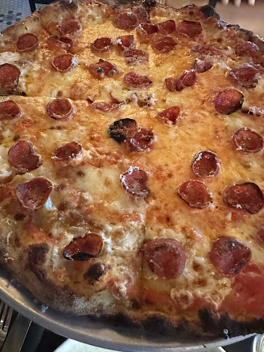 Place opened just months ago and we always pass by saying we should dine one time, so we did. Inside had great ambient lighting, tables, and decor. Our drinks came pretty quick. We wanted to order calamari thinking it would be fried but our server told us it would be pan seared. If the server has to explain every time someone orders, make a note on the menu or change the menu to fried calamari. Food however did take quite a while. When we walked in, it was just 2 other tables, 6 people total including us. We were keeping an eye on their table also, and none of them got their food except for their salad. Our food finally came out, but the calamari was missing. At this point, we wanted to cancel but we didnât want to waste food. Our server walked by and noticed our calamari wasnât here yet and to check the kitchen. It came out about 5 -10minutes later. We couldnât stop thinking if they forgot and just made the dish on the spot. The pizza was lacking flavor, no tangy flavor from the tomatoes. The bottom of the pizza wasnât crispy at all even though the crust of the pizza was close to burnt. I did expect this since I liked my pizza well done, however the pizza was closer to the doughy side while being burnt. I believe their oven was hot enough but not the surface of their oven, which is very common for I believe is a wood fire oven that they have. There was also too much parmesan which really takes away the beauty sauce and cheese from the pizza. Paying $27 for a pie, one would also expect basil to cut through the heavy and salty flavor of parmesan cheese. For a restaurant to be offering grilled calamari instead of fried, youâd expect it to be tender. It is not chewy, but definitely not tender. I asked if the skirt steak was prime grade, and they did confirm it was. The steak was tender but it was severely lacking in flavor. It basically tasted like unseasoned steak with all the herbs and chimichurri they put on top. A little salt would go a long way. Sadly, this was our best dish. The pricing for the food is not something to boast about. These are NYC prices on the high end. $19 for a cocktail is a bar at Times Square or a Michelin recommended restaurant. We donât mind paying a premium price for quality dishes. This is just not the case. For some reason, the workers kept leaving one of the doors open where we can see the trash. The smell of the trash was also coming through the door. We were very disappointed since we were just a short drive away. Will not be back for the service, food, drinks,...