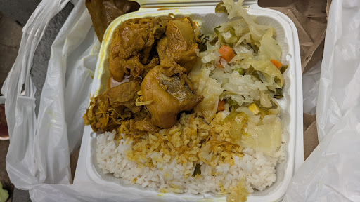 The cuisine is Jamaican - Caribbean. Stew peas, brown-stew chicken, curry goat and chicken, oxtail and more are on deck. I asked for the small curry chicken, but they were out! I panicked and got the fried chicken. It looked she was about to tell me they were out of that as well. But she went in the back and in about 5 minutes was walking out the door with a nice heavy plate.