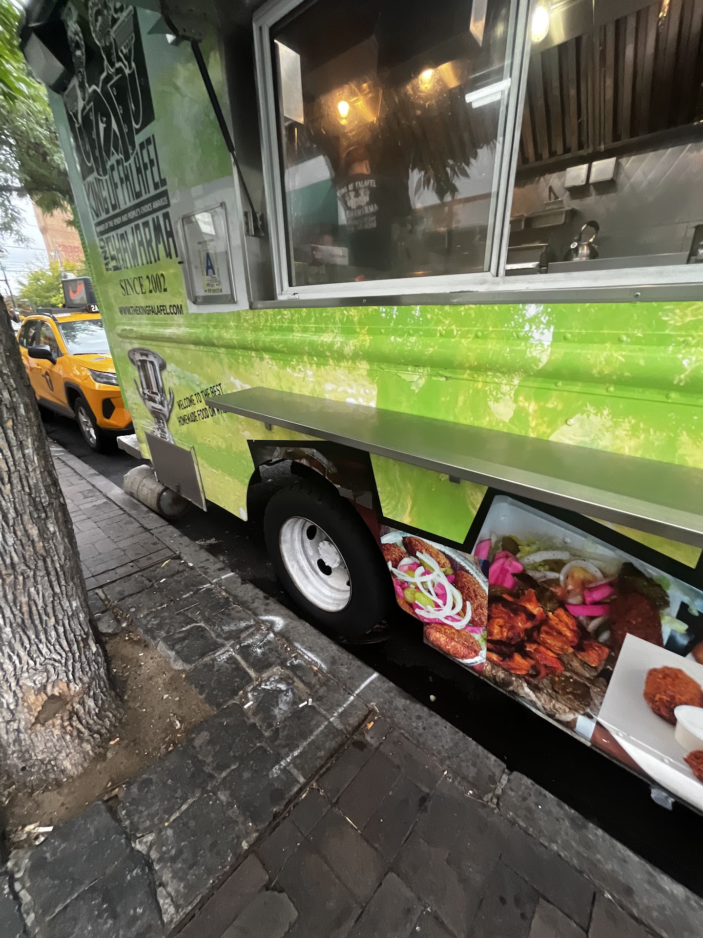 Read moreThe last time I passed by the bright green food truck parked on the corner of 31st and Ditmars, I had just eaten a massive meal at Hamido's but I made a mental note to return because the food smelled so good even from across the street. I recently was able to return, with an empty stomach, to try the King of Falafel & Shawarma. The vendor greeted me with a falafel to try, and I immediately noticed it was oval shaped. It did taste significantly crunchier, which I am attributing the larger surface area to, and the spices were fantastic. I had my heart set on trying their kefta but unfortunately by the time I arrived late Saturday evening, they were out of everything except their chicken and falafel, so I had a platter of that instead ($12). My plate was absolutely packed and smothered with their white sauce (highly recommend the red sauce as well as it packs a subtle punch), and the salad was a very welcome addition to the rice and mound of marinated and shaved chicken shawarma. There is so much flavor packed in every single bite, and the way the chicken was marinated definitely sets it apart from other shawarma carts I've tried thus far. Everyone I spoke to, including the other patrons waiting for their order, had only amazing praises to sing for KoF and I can easily understand why. I'm very happy to discover that they also have a truck on 53rd and Park, as Astoria is a bit of a trek for me.