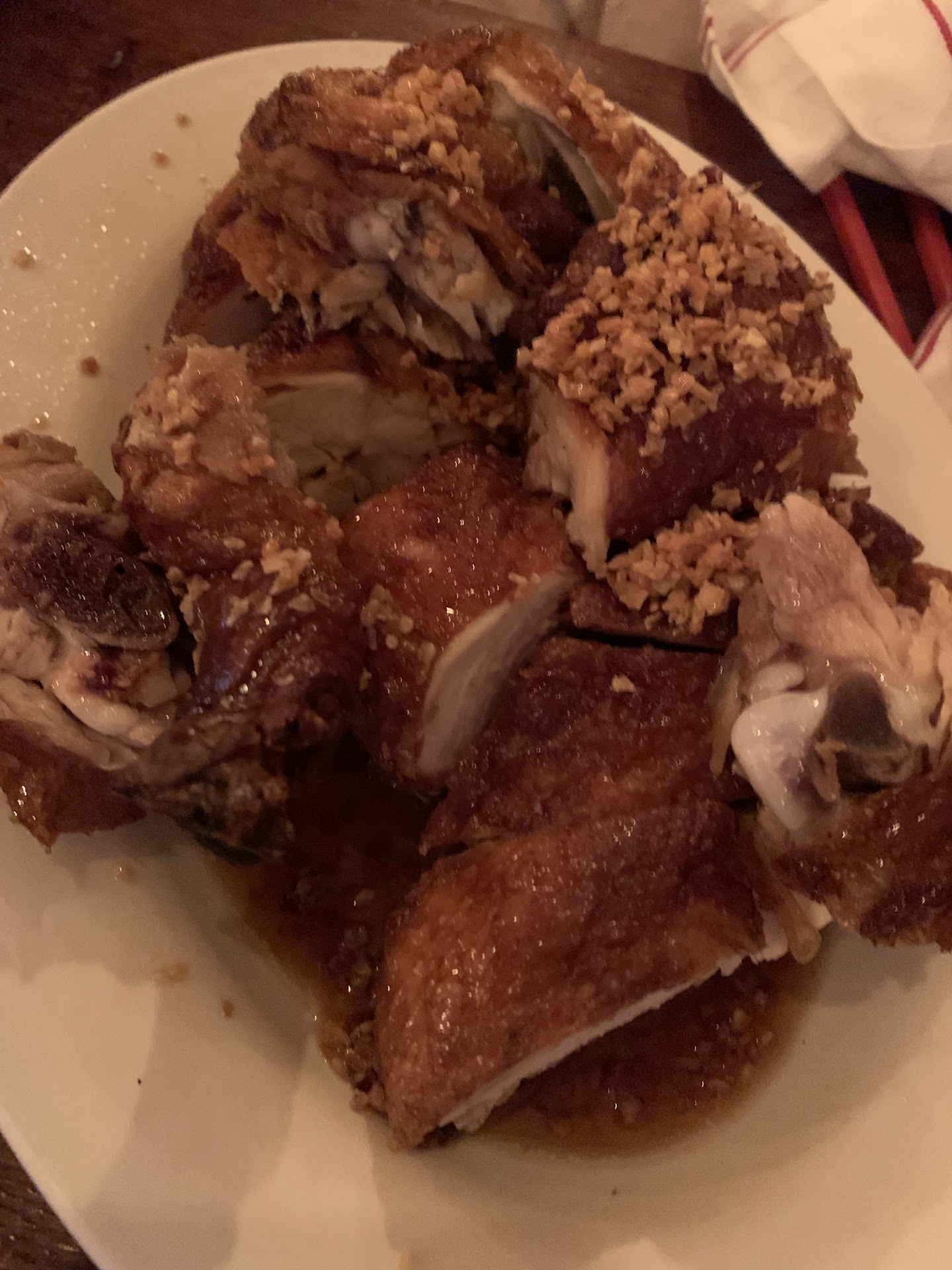 We got our 2 appetizers then received one of 3 main dish not too far after. But then there was this long wait. I saw many Togo orders being filled and being picked up. 30 minutes passed and our fried rice (mind you it’s just fried rice and only had 3 shrimps) and half chicken were still missing. We almost wanted to cancel the order at that point.