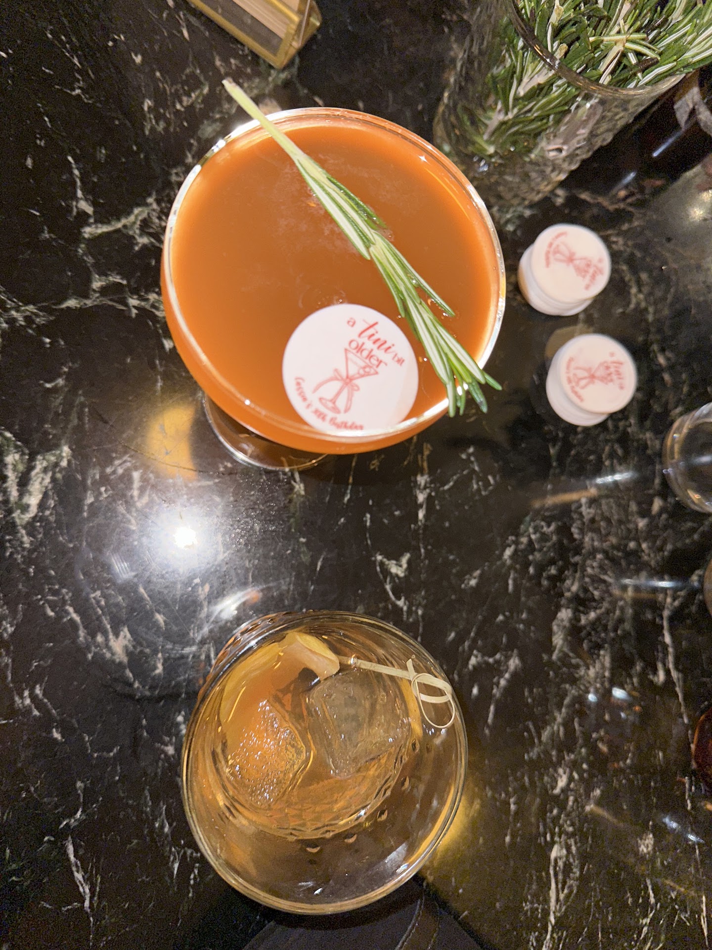We made reservations to sit at the bar, sitting at the far end next to the vinyl wall of 4,500 jazz LPs. A stack of hand-selected records for the evening sat next to the turntable. Employees would periodically change the record, and via a tablet, send the album information to a large and colorful vintage typewriter style signboard above the bar displaying the song information, including the release year. On this Saturday night, the music was upbeat and vibrant with selections by Art Blakey and Horace Silver. As I understand it, other evenings showcase different artists and moods.